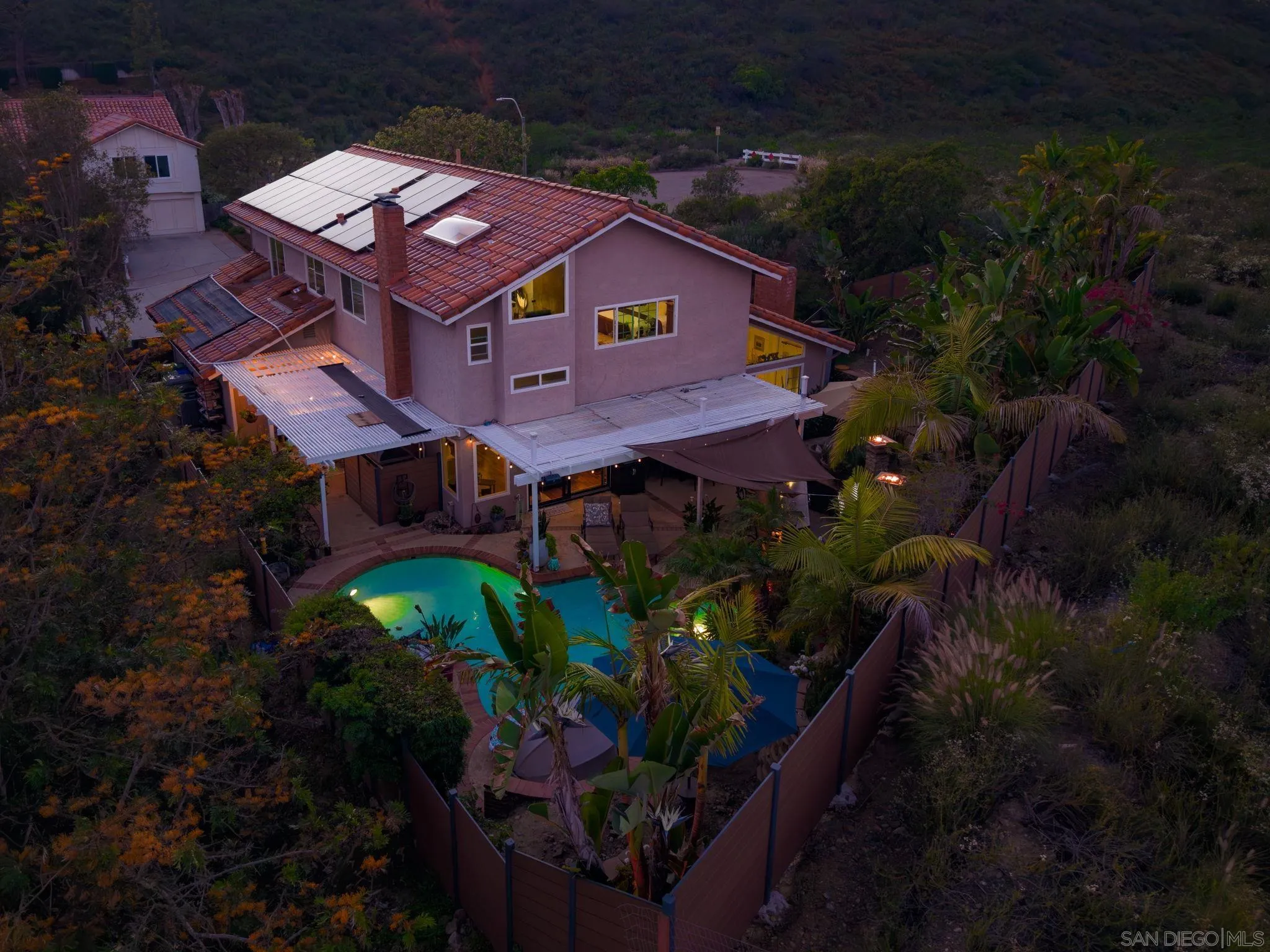 Entertainer’s Dream with Resort-Style Backyard, Ultimate PRIVACY, in Prime Location! Private oasis nestled against the serene Black Mountain Reserve. This bright, open-concept home features vaulted ceilings, 4 bedrooms, 3 full baths (1 bedroom and bath located on the 1st level), and an oversized bonus room—ideal for a home office, gym, or media space. Enjoy true indoor-outdoor living in the stunning backyard, complete with a sparkling pool, spa, waterfall, custom BBQ island with premium Delta Heat appliances, bar seating, customizable uplighting throughout, mature, tropical palm trees, bird-of-paradise, and other plants – the perfect setting for hosting or relaxing. The spacious 3-car garage offers abundant storage with built-in cabinetry, overhead racks, and a workbench. Retreat to the tranquil, island-inspired primary suite, featuring a distinctive bamboo ceiling detail, Brazilian Tigerwood flooring and a custom walk-in shower with rain shower. The updated kitchen includes new stainless steel appliances and a custom bar with a wine fridge. Located in the highly sought-after PUSD school district, minutes from Carmel Ranch Shopping Center, dining, and convenient access to I-15 and Hwy 56. No HOA or Melo Roos! Owned solar! Recent double-paned windows throughout. Dual-zone climate control.