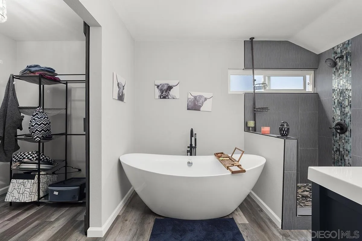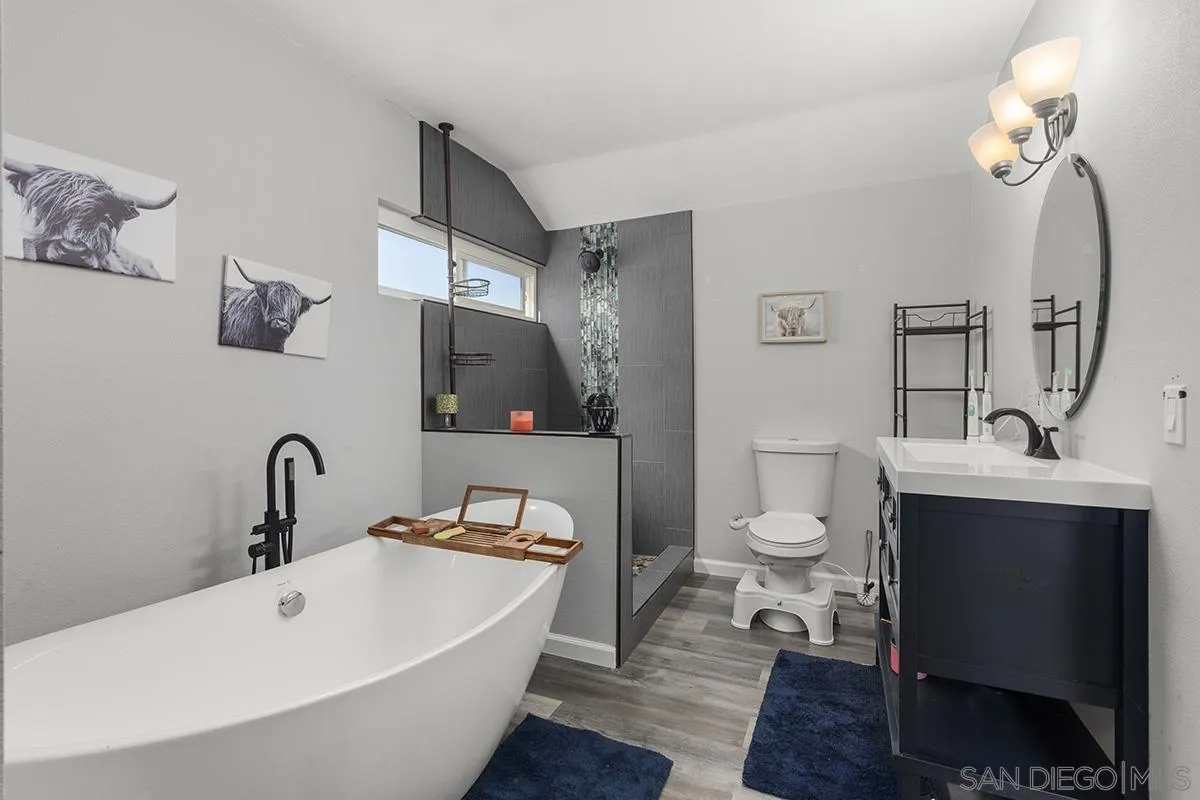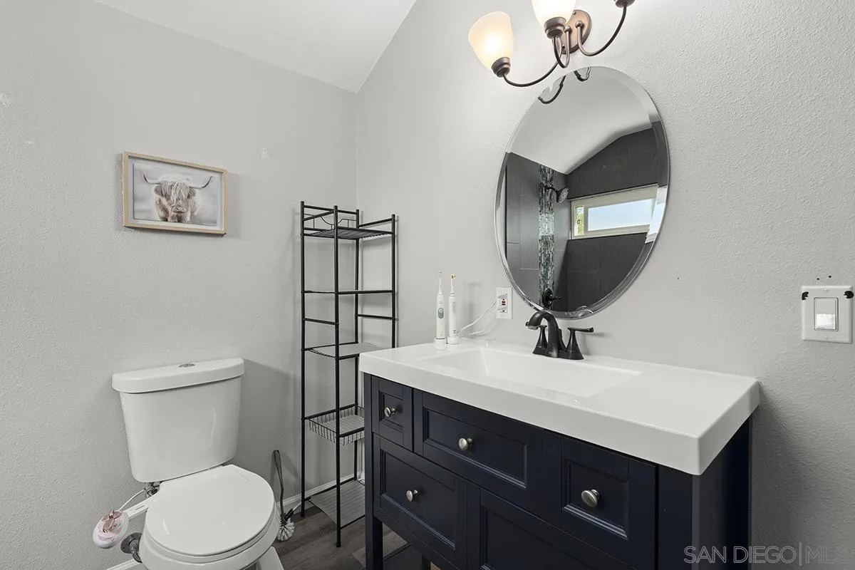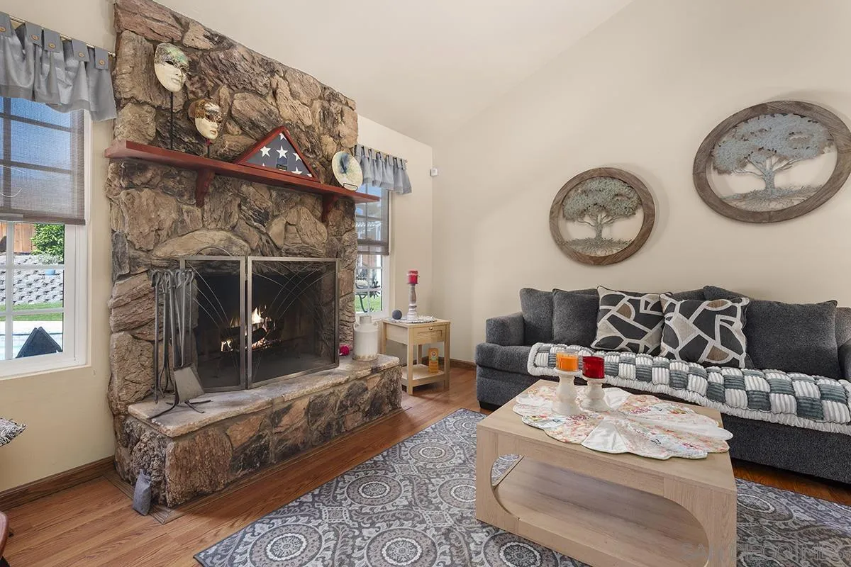 4 bedrooms and a full 3 baths. Quiet street. Move in ready home with a pool and an above ground spa. Two rooms could be primary. One downstairs and one large one upstairs (this was 2 rooms when it was built, now one large mster bedroom, the only room upstairs). Huge vaulted ceilings in the living room give this is grand feel. 49 solar panels and a new solar battery system. see attached. Recent SDGE bill was 23.00. Floor plan is in the pictures.
