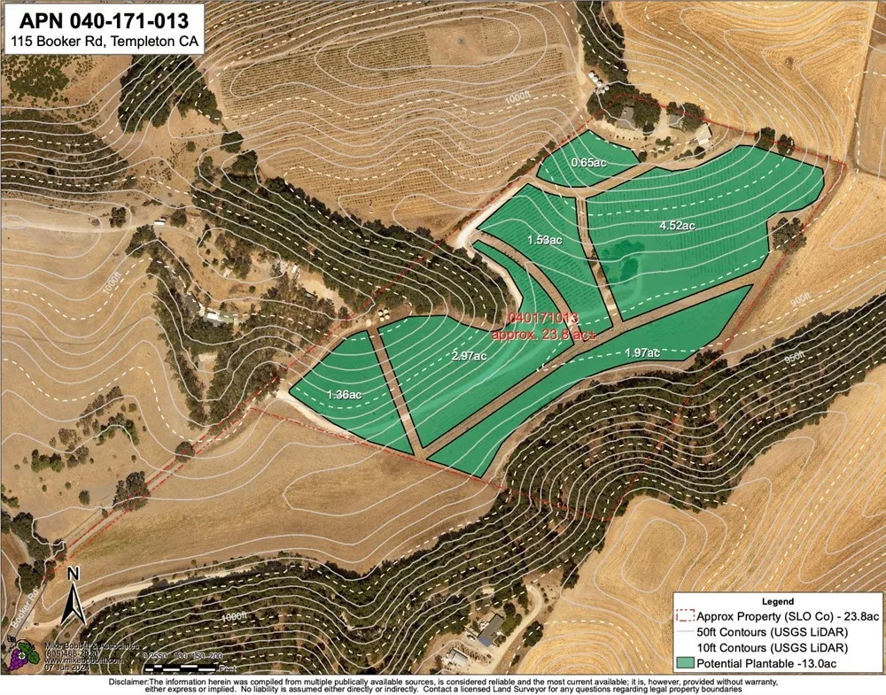Discover a remarkable 24-acre Paso Robles estate, featuring a world-class vineyard site in the coveted Willow Creek AVA, stunning scenic views, and multiple income-generating residential properties. This is an unparalleled opportunity to establish a successful wine brand and enjoy luxurious living in one of California's premier wine regions. Situated in the ideal Westside climate with coastal cooling influence, the property includes a substantial new well and a 13-acre vineyard footprint ready for planting. Selected and planted by the renowned Barrett Family of Chateau Montelena, the original vineyard benefited from southern exposure, Calcareous soil, and significant diurnal temperature shiftsmaking it an ideal vineyard site. The property also offers a furnished, turn-key 1,740 sq. ft. main house and studio, both currently earning income as vacation rentals. Additionally, there is a second home providing entitlements for a future home, along with a barn and shop for additional development potential. With its breathtaking views of Niner's Heart Hill Vineyard and rolling green hills, this Paso Robles treasure is a must-see for anyone looking to make a name in the wine industry.