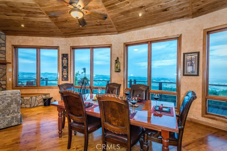 The home site is set along the desirable west side of Paso Robles, CA on the eastern slopes of the Santa Lucia Mountains. Your entry to this peaceful paradise is through a key-coded ranch road that leads to a secluded sanctuary. The spectacular, round home, 20 acres at 1,830 ft., presents breathtaking, panoramic views of hills and vineyards below with a 50-mile view. Deck views seamlessly transition indoor to outdoor living. Privacy, security, and elegance are yours for the taking. This end-destination retreat offers 3,200 ft. of living space, 900 ft. Garage/shop ft, basement and a 1400 sq ft. Deck (6,060 ft. total), making it the perfect gathering place for friends , relatives and telecommunicating. Majestic views of wine country paired with peaceful serenity and attachment to nature, minutes from the Pacific Ocean.