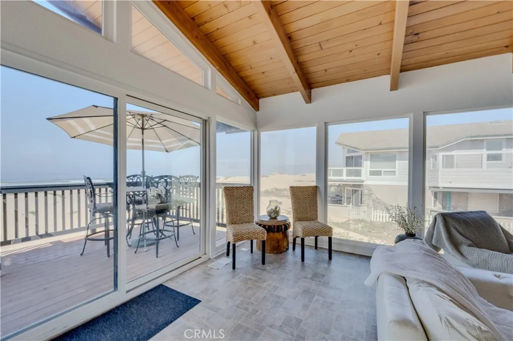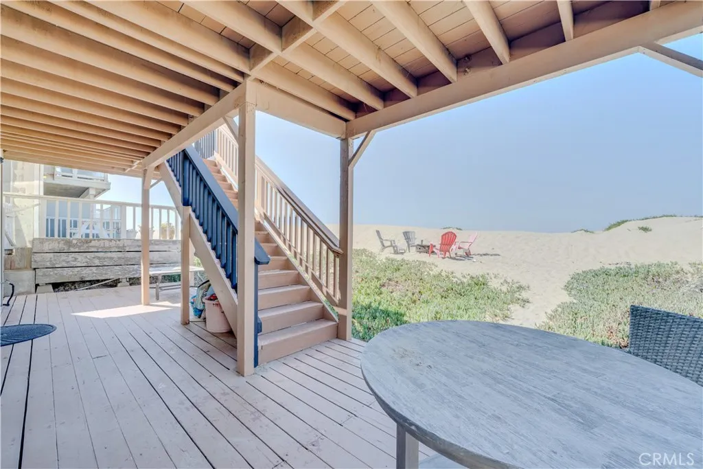 Owner may carry a note and will consider a 50/50 partnership and a buyer with 50 percent down. This Beachfront Beauty offers never-ending views of the beautiful Central California Coastline. Uniquely situated on a larger 3500 square foot corner lot which has public beach access and outstanding views. Thoughtful building design inside offers unobstructed ocean & beach views from the dining room, living room & kitchen. The updated, centrally located kitchen & dining room are open, warm & functional and a half bath. Vaulted open beams ceilings create a unique and cozy space for family and friend gatherings around the fireplace. The huge living room windows and slider doors open to the ocean/beach and the design offers unobstructed views from Avila Beach to Point Sal. Take in the beach life and west coast sunsets. Watch the rolling waves dance and dolphins and whales play and stroll the coastline with direct beach access from the upper-level exterior deck or lower level. This is the ultimate in Central Coast living and lifestyle. Walk the beach into Pismo. The large private main suite is on the upper level and offers a private north facing deck, a full private bath, and a large walk-in closet. The lower level offers three additional large bedrooms and one full bath along with a full laundry room/sand room area. Two west-facing bedrooms have direct beach access and all bedrooms boast large closets. Fully furnished and ready for current future vacationers. One of the best vacation rentals at Oceano Beach.Plus an over-sized garage w/storage. This is lovely home is a current licens