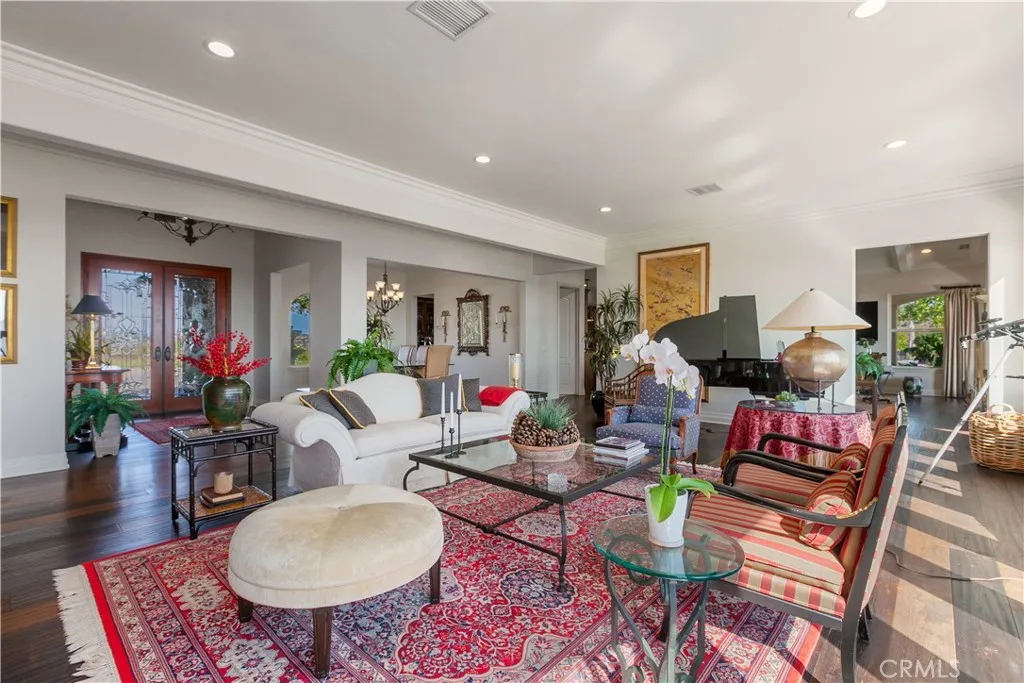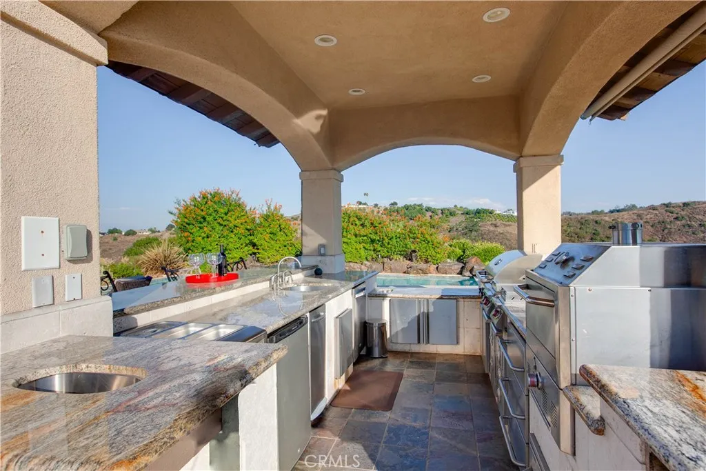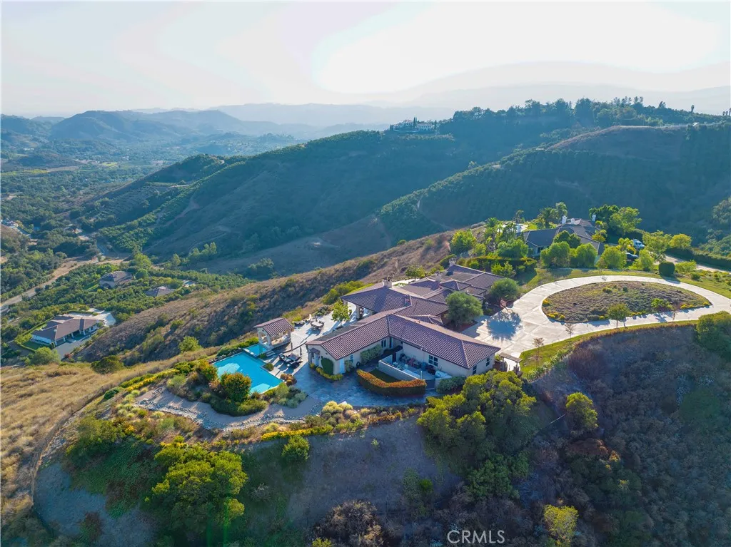 Tranquility, Privacy and Breathtaking Panoramic Picturesque Views of Surrounding Hills and Valleys. Elegant and Timeless De Luz Residence Impeccably Maintained and Beautifully Curated. Located Just Minutes from Historic Old Town Temecula (EST. 1859) and Temecula Wine Country. Stunning Drive Through Del Luz Roads with Majestic Oak Trees and Orchards, Adding Charm and Almost Magical Sense. On a Clear Day You Can Catch a Glimpse of Ocean View before heading Down Large Private Circular Driveway, and if you look left, during the Winter and Spring You Might see the Snow of San Bernardino National Forest. Impressive and Inviting Curb Appeal. Welcoming Front Porch, Lead Glass Double Door and Cathedral Ceiling Entry. Living Room with Curved Wall Enhancing Stunning Views. Gleaming Oil Rubbed Oak Flooring Throughout, Open Floor Plan Flooded with Natural Light. Formal Dining Room Adjacent to Gourmet Kitchen that Includes Oversized Center Island, Butler's Pantry, Wine Cellar, Walk-In Pantry and Spacious Breakfast Nook. Kitchen Opens to Incredible Family Room with Remarkable Beams, Fireplace and Two Sets of French Doors Leading to Covered Patio. The Primary Suite Includes Fireplace, Two Oversized Walk-In Closets and Large Retreat/Library that can be easily turned into a Fifth Bedroom, Nursery or Gym. Adjacent to the Primary Suite is also Spacious Office with Two Built-In Desks. The Left Wing of this Extraordinary Home Comprises Three En-Suite Bedrooms, All Offering Truly Magnificent Views. Resort Style Backyard Includes Several Patios, Swimming Pool, Spa, BBQ Island, Horseshoe Pit, Mega