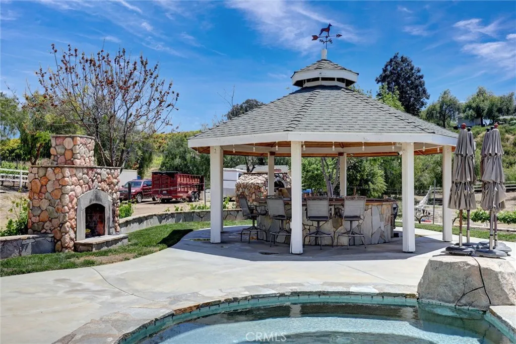 Welcome to luxury living at its finest! This stunning property located at 40570 Beaujolais Ct, Temecula, CA 92592 offers a rare combination of elegance, functionality, and resort-style amenities. Situated on a spacious lot of approximately 4.70 Acres, this home boasts a 4393 square foot residence with a unique basement apartment featuring a convenient kitchenette and walk-out access to the luxurious lazy river pool. The focal point of this property is undoubtedly the spectacular pool area, which includes a cascading waterfall, exhilarating slide, and cozy fire pit, perfect for relaxing evenings with family and friends. Adjacent to the pool is a built-in BBQ gazebo with a full outdoor kitchen, Fireplace and a pizza oven, ideal for entertaining and enjoying outdoor dining experiences. For those with equestrian interests, this property is a dream come true with its 4 stall horse barn, providing ample space and amenities for your beloved horses. Located in the heart of wine country, this home is just a stone's throw away and walking distance from many award-winning wineries, offering a lifestyle of leisure and sophistication. Inside, the main residence features 5 bedrooms and 4 bathrooms, with gourmet kitchen, spacious living areas, Dining room, Family room all open to the kitchen. The basement apartment provides additional flexibility for guests or extended family members, ensuring comfort and privacy for everyone. Home is located at the end of a cul-de-sac, gated for added security, fully fenced in and the sale includes a 36 panel ground mount paid solar system. Don't miss ou
