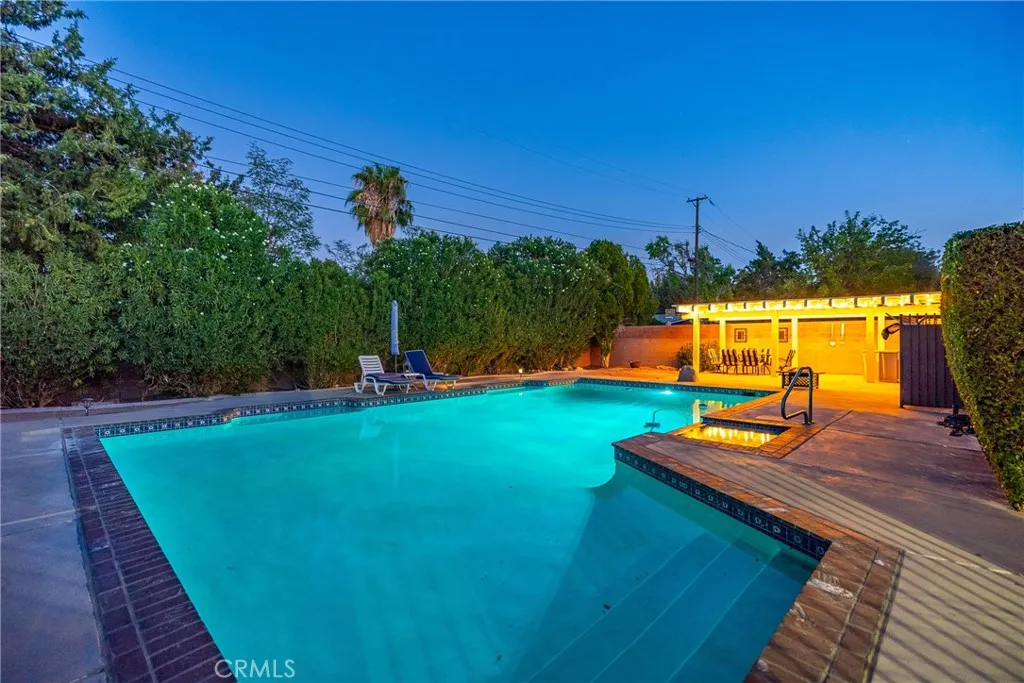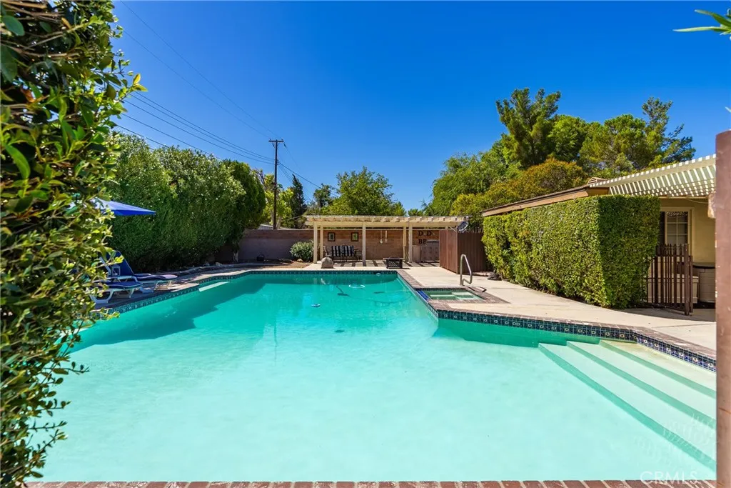 Experience luxury living at its finest in this stunning single-story custom home, perfectly situated on a spacious corner lot in West Lancaster. Set on over a third of an acre, this 5-bedroom, 3-bathroom home offers the ultimate blend of privacy, space, and style in a sought-after neighborhood. The lushly landscaped front yard is fully fenced, creating a serene, park-like retreat. Inside, discover thoughtfully designed interiors with laminate flooring, designer light fixtures, and custom details throughout. The living room features a striking white brick fireplace and seamlessly connects to a formal dining room with charming pocket doors. The gourmet kitchen is a chef's dream, offering abundant cabinetry, granite countertops, a double oven, and a microwave, all perfect for hosting and entertaining. Adjacent to the kitchen, a second cozy living area with a fireplace flows into a sunlit bonus room, ideal for a game room or craft space, with French doors leading to the entertainer's backyard. Generously sized secondary bedrooms, one as spacious as the primary suite, offer large closets. The primary suite boasts a walk-in closet and an en-suite bathroom, while two beautifully updated secondary bathrooms add modern convenience. The backyard is a true retreat, featuring multiple covered patios, a sparkling in-ground pool and spa. A lush private side yard adds to the tranquil atmosphere. The property also offers a detached 2-car garage, an extended fenced driveway, and a covered carport, perfect for RVs, boats, or additional vehicles. This home is an entertainer's paradise where l