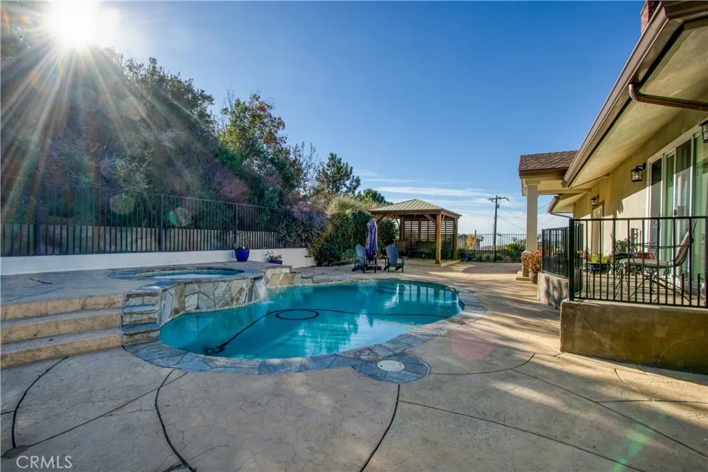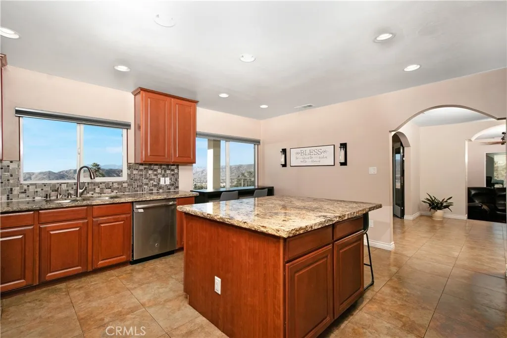 Your Search for a Home with a Private Studio Apartment Ends Here! Completely renovated in 2015, this Yucaipa hilltop property is designed for modern living, with one primary feature being a self-contained 400 sq ft studio apartment on the ground floor. Offering a private entrance, a kitchenette, and a full bathroom, this versatile space is the perfect solution for extended family, a home business, or a valuable source of rental income. The kitchenette is equipped with a dishwasher, garbage disposal, a large stainless steel sink, and space for a refrigerator. Ample countertop space allows for convenient use of an air fryer/oven and a stovetop burner. The remainder of the ground level includes the two-car garage with 180 sq ft of additional storage space, and a versatile bonus room perfect for a home theatre, wine room, or workout space. Level two, the main floor, features the front entry. There's a spacious kitchen with a large island, a cozy family room, a convenient half bath, a living room with a fireplace, a bonus space ideal for a home office with amazing views, and two primary bedrooms, each with an ensuite bathroom. The main level also has a deck, perfect for enjoying the panoramic views. The third level includes a landing, two generously sized storage closets, and a primary bedroom with an ensuite bathroom and walk-in closet. The fully landscaped property has a fenced area for relaxing by the pool and spa. For added convenience, 30-amp power and a sewer cleanout are available near the garage, providing the option of accommodating guests in an RV. Additionally, there