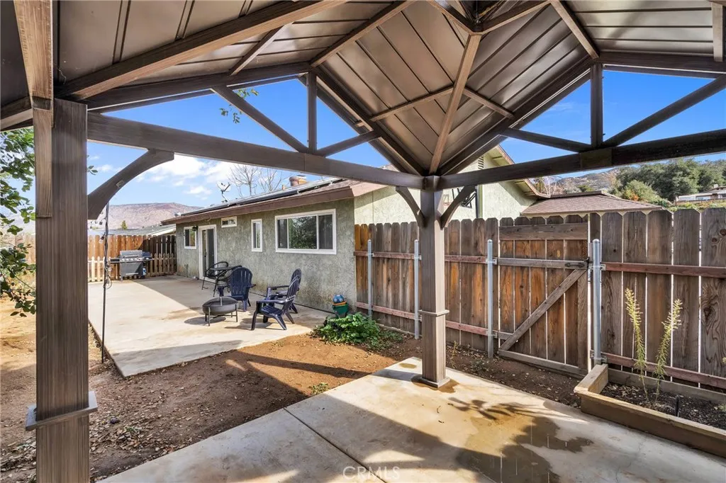 Rare North Bench opportunity offering panoramic mountain views, modern upgrades, and a highly walkable lifestyle near parks, Uptown dining, and Yucaipas best amenities. Step inside to an inviting open-concept floor plan featuring a welcoming brick fireplace and a kitchen with dining area that opens through sliding doors to the back patio. The low-maintenance backyard includes a gazebo, perfect for relaxing evenings with sunset and city-light views. Recent upgrades include double-paned vinyl windows, woodgrain vinyl flooring, and new carpet in bedrooms. The guest bathroom offers a newer vanity with granite countertop and tile bathtub, while the spacious primary suite features wide windows with sunset views and a remodeled bath with quartz countertop. Two additional bedrooms include large closets for ample storage. Additional highlights include a whole-house water softener and reverse osmosis system, alarm system, assumable solar, and a two-car garage with built-in cabinets and workbench. RV parking adds flexibility, and the charming front patio provides the perfect spot to enjoy the mountain backdrop. Ideally located directly across from scenic Flag Hill Park and just a short walk to historic Uptown Yucaipa, this home provides easy access to boutique shopping, coffee houses, restaurants, craft breweries, and year-round community events. The location also offers close proximity to Yucaipa Regional Park, Oak Glens apple orchards, and seasonal festivals, combining small-town charm with outdoor adventure. Quick access to I-10 makes commuting and weekend getaways effortless. Set