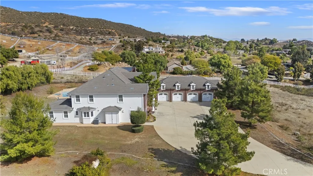 This classic 5 bedroom/7bath Colonial estate home is definitely of the highest level of construction quality you can imagine. It is situated on approx 6 fenced acres and from the second you enter the private gates up to this grand manor you will feel right at home. You will immediately spot the exceptional wood working detail and quality craftsmanship with a well thought out floorplan. Extensive upgrades through out including rich maple hardwood floors, stone bathrooms and loads of 12" moldings and custom built ins. The magnificent gourmet kitchen with granite counters, dual islands, double Viking ovens and 6 burner stove top, dual Viking dishwashers, a Miele espresso maker and full size Subzero fridge and freezer. The main level has a formal living area with a 2-story ceiling, formal dining, separate family room as well as a full size theater room. Aside from the office downstairs, there is also the main floor primary suite with sitting area, stackable laundry area, fireplace and an oversized master bath with a steam shower and walk in closets. The upper level has 4 large bedrooms, each with a private bath, plus an upstairs laundry, and loft area with a second staircase leading to the kitchen. Every closet has custom built in cabinetry and shelving. There is an outside fireplace, to compliment the 5 fireplaces in the house. enjoy the oversized pool and spa as well as the privately fenced back yard for pets. The 4 car garage has high ceilings, epoxy floors and 4 separate doors. Endless possibilities on this estate to build a guest house, sport court, stables, or even your o