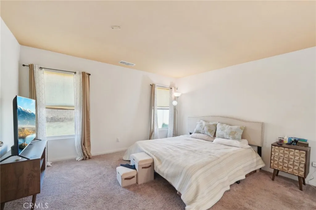 $10,000 FOREGIVABLE GRANT Experience the comfortable, laid-back living you want in this delightful 3-bedroom, 2-bath single-story home in a beautiful Hemet neighborhood! Past the foyer, continue to the open-concept main gathering areas filled with natural light, illuminating a crisp white palette, textured tiles, and plush carpeting underfoot. Glass sliders off the dining alcove beckon you to enjoy scenic alfresco celebrations. Steps away, the bright kitchen makes cooking a breeze with its stainless steel appliances, abundant cabinetry, and granite countertops that extend to the eat-at island. Three well-sized private quarters accommodate you and overnight guests, two of which share a tiled bath. Outshining the others, the primary retreat features a large walk-in closet and a refreshing ensuite with a separate shower and soaking tub. Outside, a versatile fenced-in yard presents plenty of potential for fun and leisure activities. Additionally, theres a laundry room, an attached 2-car garage, and solar panels for energy efficiency. Notable perks include access to incredible community amenities like the pool, recreational areas, and picnic parks, full gym in the club house. Come for a tour while this great opportunity is still available!