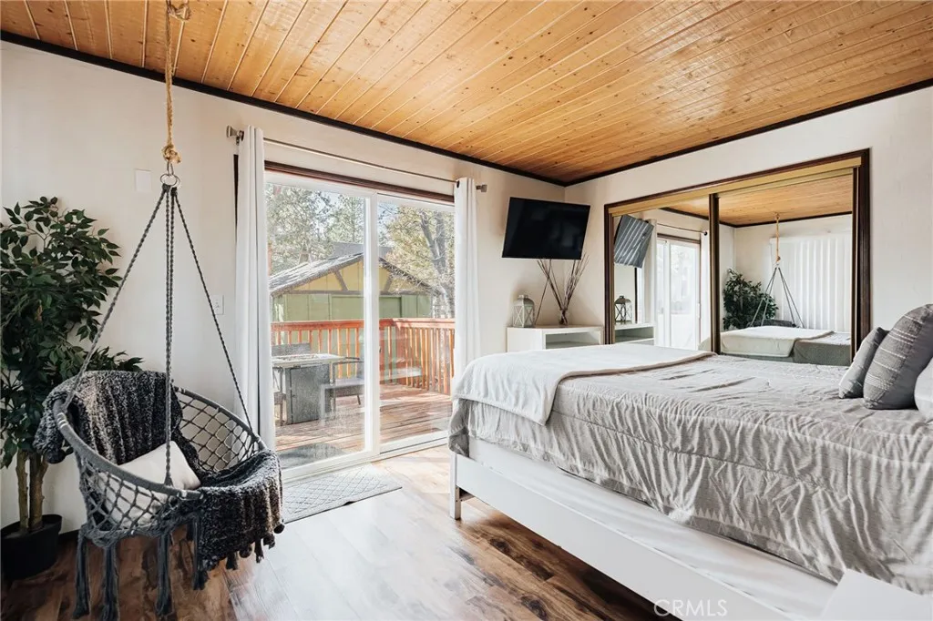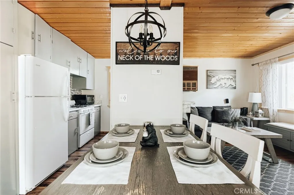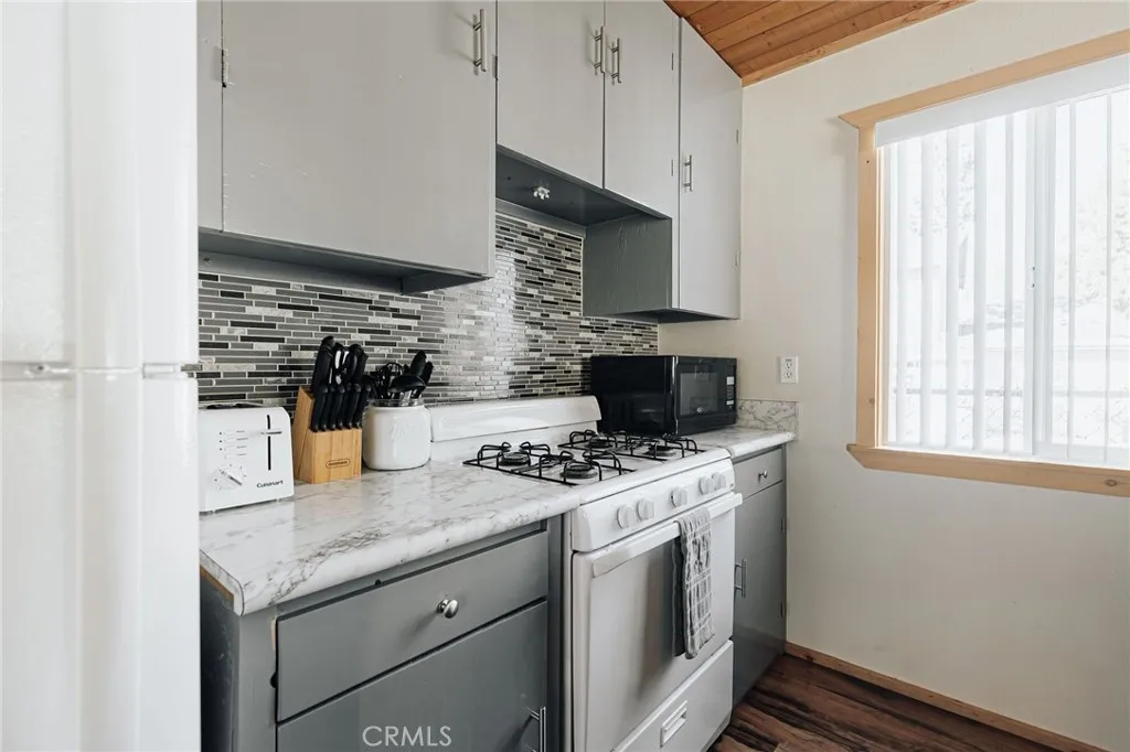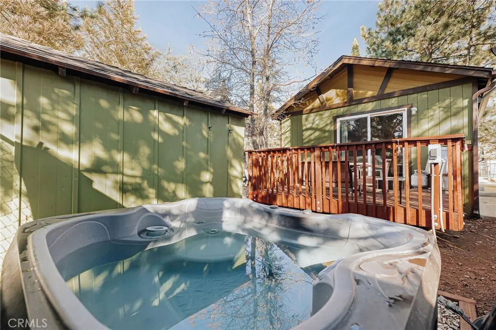 Imagine waking up to the gentle rustling of pine trees, sipping your morning coffee on the spacious deck, and unwinding in the hot tub under a sky full of stars. This meticulously updated 1-bedroom, 1-bathroom cabin is a true mountain escape, offering the perfect blend of charm, comfort, and modern convenience.Inside, youll find a warm and inviting living space with beautiful wood-paneled ceilings, sleek flooring, and a cozy natural rock fireplaceperfect for chilly mountain evenings. The thoughtfully designed kitchen features quartz countertops, a stylish tile backsplash, updated cabinetry, and a convenient breakfast bar, making it a great space to cook and entertain. The spacious bedroom is a serene retreat with ample natural light and direct access to the deckideal for sipping wine by the fire pit or enjoying a quiet evening under the stars. The fully fenced yard provides privacy and security, while the concrete driveway with space for two cars is a rare find in Sugarloaf. Plus, this home is connected to natural gas, a valuable advantage over the many propane-dependent homes in the area. Just minutes from the National Forest, hiking trails, a park, dog park, and the popular Kallans Bar & Grille, this home is also only 10 minutes from Big Bear Lake, grocery stores, and ski resortsputting year-round adventure right at your doorstep. Whether you're looking for a cozy full-time residence or the ultimate couples getaway, this turn-key cabin is ready to be yours!