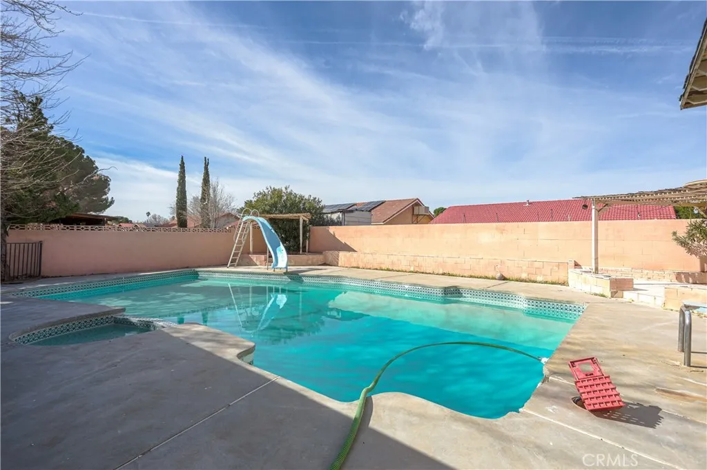 Opportunity knocks!! Extraordinary opportunity to own this spacious pool home, walk in to vaulted ceiling, new laminate type flooring, make way to the cozy kitchen with new ample cabinetry with stone type counter tops, walk through the cozy family room with wet bar and recessed lighting and new floors, walk upstairs to the extra large master bedroom with walk in closet, private full bathroom and double doors with access to large balcony, don't forget to glance at the three additional bedrooms upstairs as you step out to the entertainers back yard with large covered patio, spacious side yard and a sparkling blue recently refinished swimming pool to enjoy on those hot summer days, this fine home has also offers brand new HVAC and brand new water heater, this house is seeking a new homeowner to call it Home Sweet Home - call today for your private tour!!