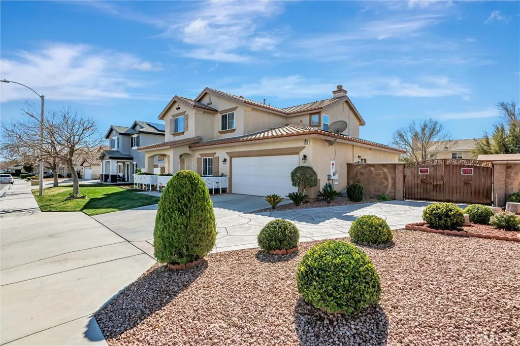 Welcome to this breathtaking 5-bedroom + 3-bathroom home in Lancaster! Offering an expansive 2,373 sq. ft. of living space on a massive 9,304 sq. ft. lot an entertainer's paradise! As you enter, you're greeted by a formal living and dining area featuring elegant newer laminate flooring throughout. The gourmet kitchen is a chef's delight with a spacious island, and it seamlessly opens to a family room, complete with a charming fireplace. Convenience abounds with a guest bedroom, full bathroom, and laundry room on the main floor. Energy-efficient savings thanks to a leased solar system that helps cut down on electricity costs. Step outside into the ultimate backyard oasis! The custom stamped concrete, sparkling pool & spa, and pool house with a full bathroom make this space perfect for hosting guests. RV access, an extended driveway, and a 3-car garage offer ample parking and storage. Situated in a prime location, this home is just moments from Sky Tower Softball/Baseball Park, Lancaster Soccer Complex, shopping centers, and easy freeway access. Don't miss your opportunity to own this incredible property.