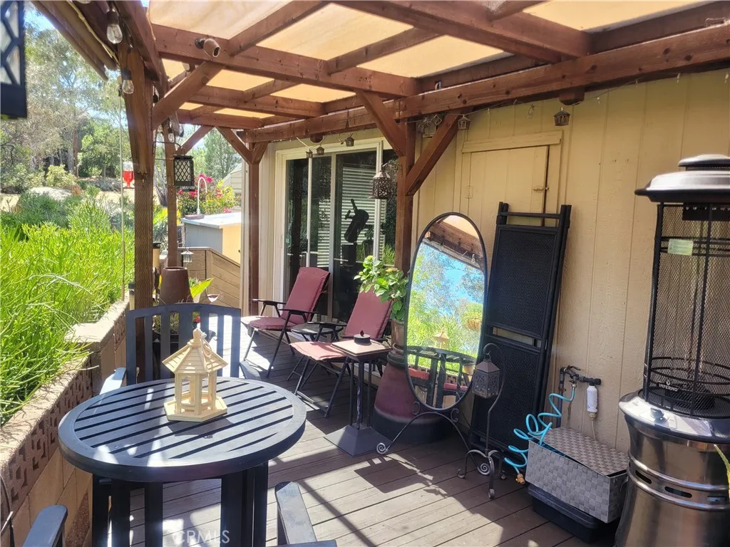 Attention all homebuyers, here is your chance to live in the Shangri-La that is Indian Hills Mobile Estates! Nestled amongst the beautiful rocky outcroppings and trees of Topanga Canyon, this home is adjacent to the historic site of the once famous Iverson Movie Ranch and boasts an incredible backyard view that will absolutely wow any visitor! This well-maintained smart home is complimented by numerous upgrades and features, such as stainless-steel appliances, a fireplace, wood floors, new bathroom tile, as well as upgraded light-fixtures and fans throughout. The private rear deck is a sensational, one-of-a-kind environment (especially at night!) and home to its very own jacuzzi overlooking the stunning rock formations and foliage of Chatsworth! Indian Hills amenities include a community center, gorgeous swimming pool, basketball court, horseshoe pit, and billiards. As an added, turn-key feature- and the seller's preferred option- buyers can purchase the home FURNISHED with high-end furniture pieces, home decor, TV's, surround sound entertainment system, home fitness equipment with treadmill, potted plants, fountains, patio heaters, patio fireplace, torches and lanterns, BBQ, portable backup generator system, along with smart-home lights and accessories for an additional 10% package deal.