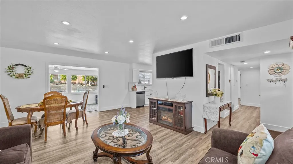 PRICE IMPROVEMENT!!!Beautifully upgraded 2-bedroom, 2-bath home in the heart of Sun City! This move-in-ready home features a great floor plan with a spacious bonus roomperfect for a home office or additional family room. Recent upgrades include a new roof, new fencing, and a new sewer line. Enjoy the updated kitchen with white cabinetry, Quartz countertops, and stainless steel appliances, along with luxury wood-look vinyl flooring throughout. The primary suite offers an upgraded bathroom with a step-in shower, and the secondary bedroom and bath have also been tastefully remodeled. The private, fully fenced backyard features low-maintenance landscaping, mature orange trees, and direct access to a walking trail on the hillsideideal for outdoor enjoyment. Additional highlights include a one-car garage, low HOA, low taxes, and convenient access to shopping, dining, and the freeway. Dont miss this turnkey home in a highly desirable 55+ community!