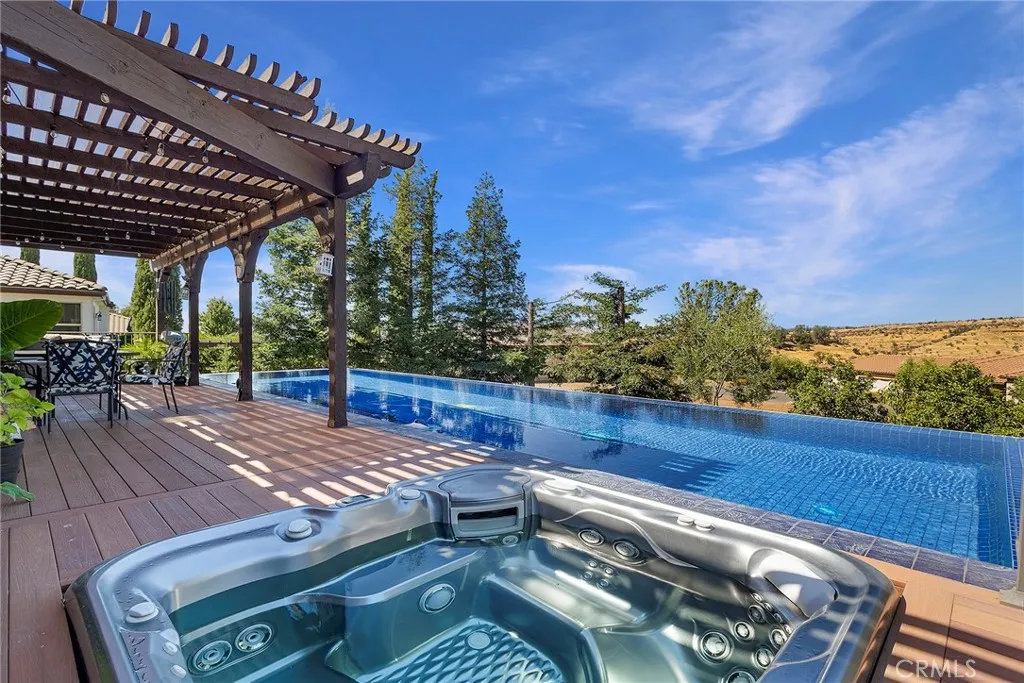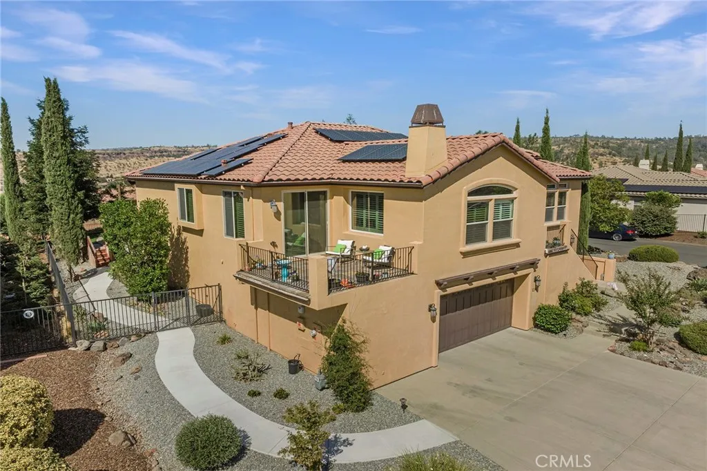 Welcome to the exclusive gated CANYON OAKS Community. Custom Built by Michael Galli with all the quality finishes and design you would expect. The open floor plan design offers inclusion and sophistication. The home has a Telsa Owned solar system with Tesla Powerwall and Tesla car charger. The gorgeous infinity edge pool is the focal point of the outdoor living & entertaining. The pool and spa are both salt water and the pool water that spills over the edge recirculates though a UV filter plus a Pentair Hybrid Heater. The composite deck has a custom pergola extending the entire length of the home. The backyard view of Little Butte Creek canyon/upper bidwell are wonderful. The formal entry welcomes you into the home. The living room offers a double coffer ceiling, hardwood floors, art display nook, natural gas fireplace, plantation shutters and built in cabinets and display shelves. The kitchen offers a large entertaining island, 20X20 travertine tile floors, Bosch dishwasher, 5-burner built in gas range, bosch built in oven, microwave, granite countertops and new LG thin Q refrigerator. The separate family room is perfect for informal entertaining with hardwood floors and entrance to the backyard entertaining deck. Off the kitchen/dining area is a fantastic 12ftX15ft. slate tile balcony to enjoy the southern views of the Sutter Buttes, Valley and Coastal Mountain Range. Enjoy the morning and evening breeze coming over the ridge! The primary suite offers a double door entry with art display area. The bedroom area has a slider to the backyard and views of the canyon walls. Th