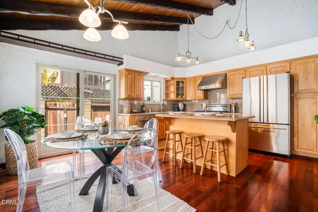 Welcome to paradise! This Spanish inspired beach beauty sits just a few homes in from the oceanfront! Nestled in the coveted enclave of Mandalay Shores this prime location is graced by the breathtaking beauty of Ventura County's shoreline. Here, you'll discover a tranquil world, unhurried pace, where the sands stretch infinitely & coastal vistas paint a mesmerizing canvas. Gateway to the Channel Islands, we offer scenic beauty & a strategically positioned coastal haven, equidistant from Malibu & Santa Barbara. Immerse yourself in a realm defined by endless sunsets, sand-kissed shores, & a medley of seaside adventures. Picture yourself surfing the waves, gliding along in a kayak, or savoring the serene moments of paddle boarding. Visit local yacht clubs, explore nearby wineries, perfect your golf swing, indulge in retail therapy, & savor culinary delights at charming restaurants. As you enter the front gate you are greeted with an open front patio with a raised sitting area with wind break for those seeking some shelter but still offering plenty of fresh ocean breeze. On the 1st level, an expansive living room is framed by vaulted ceilings with beams, Spanish style fireplace w/wood mantle, gleaming wood floors & offers a gorgeous marble top bar with stone surround. The entire home features multiple arched doorways, hand carved beams & ceiling fans. The open living area adjoins the gourmet kitchen with stone counter tops, stainless steel appliances, dining area & island w/bar seating. There are two very spacious guest suites w/a bright & cheery guest bathroom located in betwe
