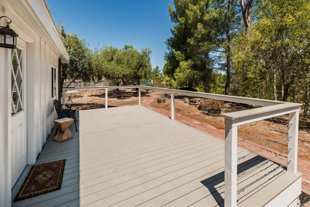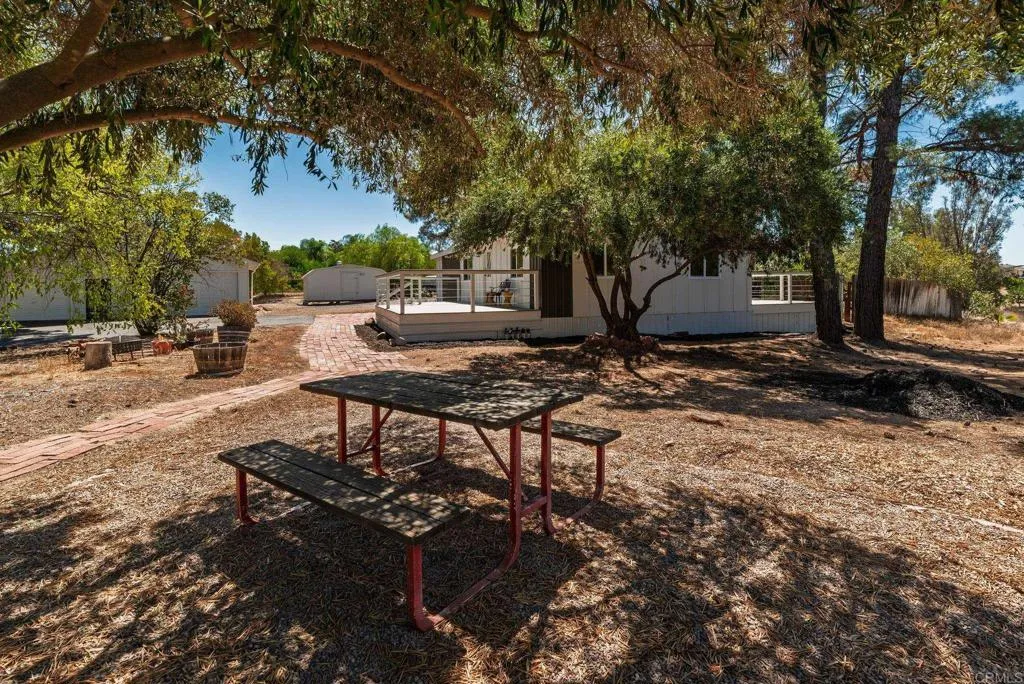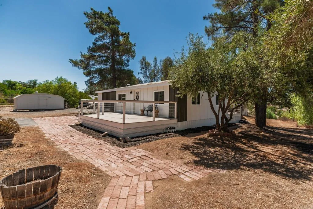 Wonderful investment opportunity in the heart of Temeculas renowned wine country! This 2.71-acre property is perched atop a private driveway and offers two residences: a beautifully updated 3 bed/2 bath manufactured home plus a recently renovated 1 bed/1 bath unit above the detached garage. The main home has been extensively refreshed inside and out featuring new Trex decks in the front and back, all-new flooring, new drywall on every interior wall, and new siding. Fresh paint throughout the property gives it a bright, welcoming feel. The kitchen shines with a new countertop and backsplash, while both bathrooms include new vanities and toilets. Surrounded by mature eucalyptus and olive trees, the property offers a park-like setting with sweeping views. Whether youre looking to build your dream home, enjoy rental income, or create a multi-generational retreat, the possibilities here are endless. With plenty of space for RV parking, storage, animals, or future expansion, this versatile property is ready to welcome you home.