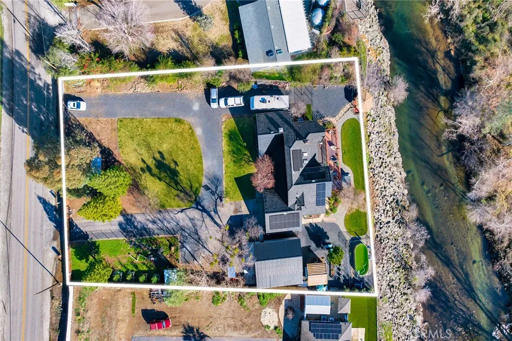 Stunning, Updated, waterfront residence, in the coveted butte creek canyon neighborhood with OWNED SOLAR. This quality, custom-built 3 bedroom, 2.5 bathroom home is situated on just over an acre of creekside property, which offers a completely fenced yard with a private automatic gated entrance, located in a quiet, serene neighborhood. Creekside views abound from inside and out! French-doors open up to a sizable living room with vaulted ceilings, a skylight, and an antique brick hearth with a wood-stove and built-in wood storage. The brick continues into the gorgeous kitchen with a charming arched facade over the range. The kitchen also features a large walk-in pantry, seating at the peninsula, and a generous dining area with views, views, views! A split bedroom floor plan offers 2 comfortably sized bedrooms, and a large recently updated bathroom. The luxurious master suite is located on the other side of the home, and features a huge soaking tub, and access to the gorgeous back patio which has newer trex decking. An upstairs flex space is perfect for a fourth bedroom, home office, or gym. It features a balcony overlooking the creek, a large custom-built Murphy bed, and a half bathroom. The laundry room and access to the garage are conveniently located. Must see this gorgeous property to appreciate all its unique features, including tons of storage space, OWNED 15,000 KWH solar system, high-speed star-link internet, a waterfront gazebo, year-round creek access, a newly built 20x35 ft. shop, 8,200 watt auxiliary generator, and RV parking.