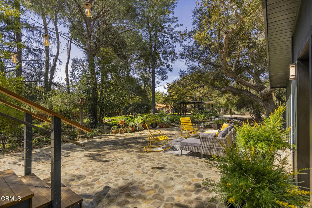 Love is in the Air! Quintessential Ojai living radiates from this enchanting East End property off Thacher Road on the delightfully named Happy Lane. Happy indeed ~ Spanning on an acre, this private mini-compound is a blissful fusion of lush beauty, shaded by mature canopy trees and filled with artistic inspiration. The main house offers two bedrooms, a converted office serving as a third bedroom, and a bathroom. Upstairs, the separate Junior ADU charms with one bedroom, one bath, and a spacious, treehouse-like terrace perfect for stargazing or unwinding with stunning views. Creative spaces abound, from the art studio and writer's office to the cozy chill cabin and outdoor showers, all complemented by an infinity cedar redwood tub. The grounds are an entertainer's dream, featuring a fire pit, yoga platform, rock walls, and former tortoise sanctuary, blending rustic charm with serene tranquility. Your guests will feel home in the chic and cool Airstream, set amidst the enchanting landscape. Ideal as a primary residence or a tranquil pied-a-terre, this bohemian haven embodies Ojai's laid-back, artistic lifestyle, surrounded by nature and conveniently close to top schools, hiking trails, and mountain adventures. This is Ojai living at its best!