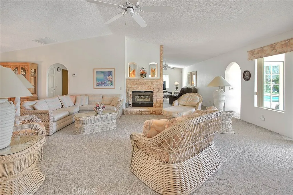 ***PRICE REDUCED***SELLER MOTIVATED***Beautiful single story custom 2360 s.ft., 3 bedroom, 2&1/2 bath home on a 10,000s.ft. lot in highly desired Indian Palms Country Club. A circular drive and 3 car garage add to the homes great curb appeal. The double door entry leads into an open concept living room with a walk behind wet bar. Entering, there is a designated dining area to your left and a gorgeous, stacked stone, 2 sided fireplace with custom lighted cutouts as you walk towards the family room. There are ceiling fans and berber carpet throughout most of the home and a central vacuum system. The well appointed kitchen has ample cabinets and counter space, built-in double ovens, dishwasher and center island with cooktop. Off the kitchen is a utility/laundry room with sink. The spacious primary bedroom has a full ensuite bath with a dual sink vanity and large walk-in closet with mirrored doors. Separate shower and soaking tub and A/C unit. The remaining 2 oversized bedrooms also boast mirrored wardrobe doors and ceiling fans and share a full bath with a tub/shower combo off the hallway. 3 sliding doors offer access to the backyard where you will find a built-in pool & spa, a lighted, covered patio with fan, barbecue, planters, grass area, flag pole and views of the golf course and Santa Rosa mountains. The 1/2 bath can be accessed directly from the pool area. Homeowners enjoy low HOA dues with pay as you play golf, 24 hour gate guarded security, a restaurant and hotel. A social membership is available which includes the Lifestyle Fitness Center, tennis and pickleball courts