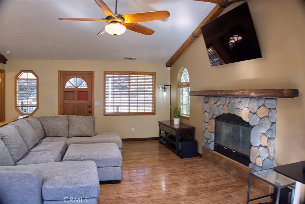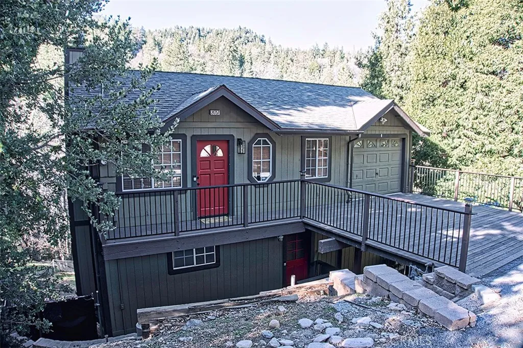 Welcome to your dream mountain retreat! Nestled in the heart of the San Bernardino Mountains, this charming 3-bedroom, 2.5-bathroom home offers the perfect blend of cozy comfort and serene natural beauty. With 1,390 square feet of thoughtfully designed living space, this property is an ideal escape for those seeking a peaceful getaway or a year-round residence in a picturesque alpine setting. Step inside and be greeted by a warm, inviting interior featuring a spacious living area with large windows that frame stunning views of the surrounding forest. The open-concept layout seamlessly connects the living room to a well-appointed kitchen, complete with modern appliances and ample cabinetryperfect for preparing meals to enjoy on your private deck. Imagine sipping your morning coffee or hosting a barbecue while soaking in the crisp mountain air and the sounds of rustling pines surrounding an active creek. The exterior of this home is just as captivating, with its classic cabin charm highlighted by a striking red front door and a spacious deck that wraps around the front, offering plenty of space for outdoor relaxation. The multi-level backyard allows for fun and relaxation while immersing you in nature. The attached garage and flat driveway provides convenient storage for your vehicles or outdoor gear, making it easy to explore the nearby hiking trails, ski slopes, or the sparkling waters of Lake Gregory, just minutes away. Set on a generous lot surrounded by towering trees, this home offers privacy and tranquility while remaining close to the quaint shops, restaurants, and co