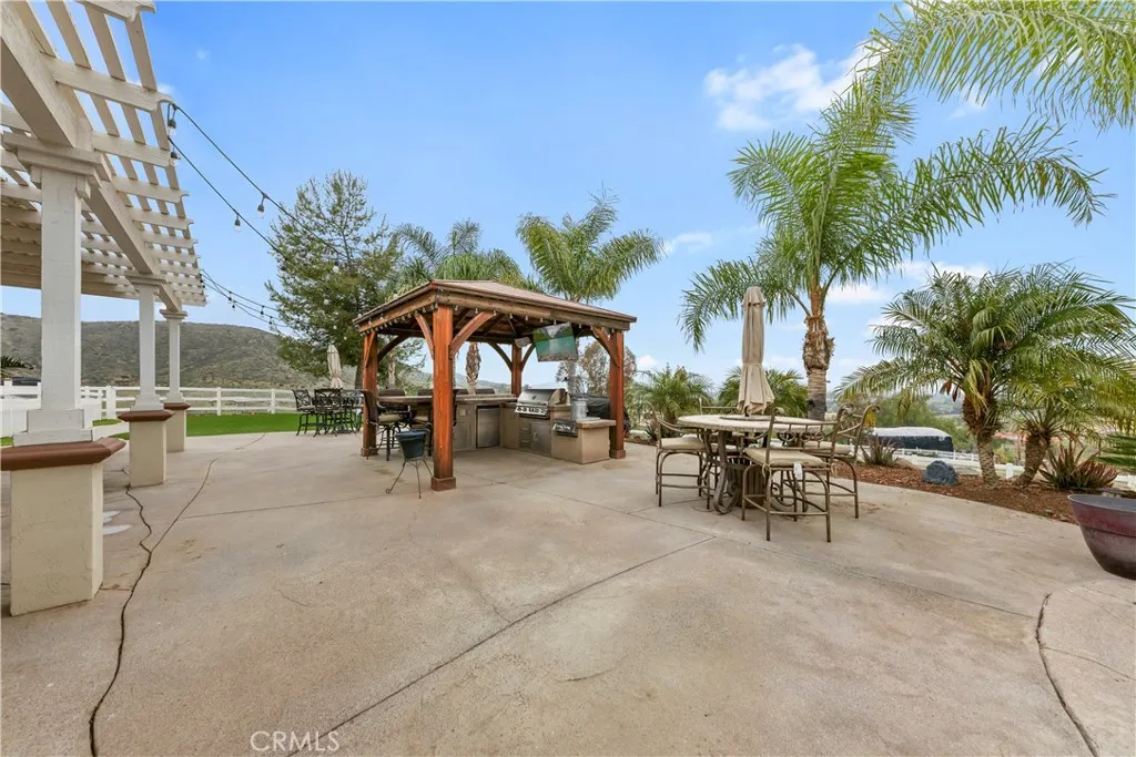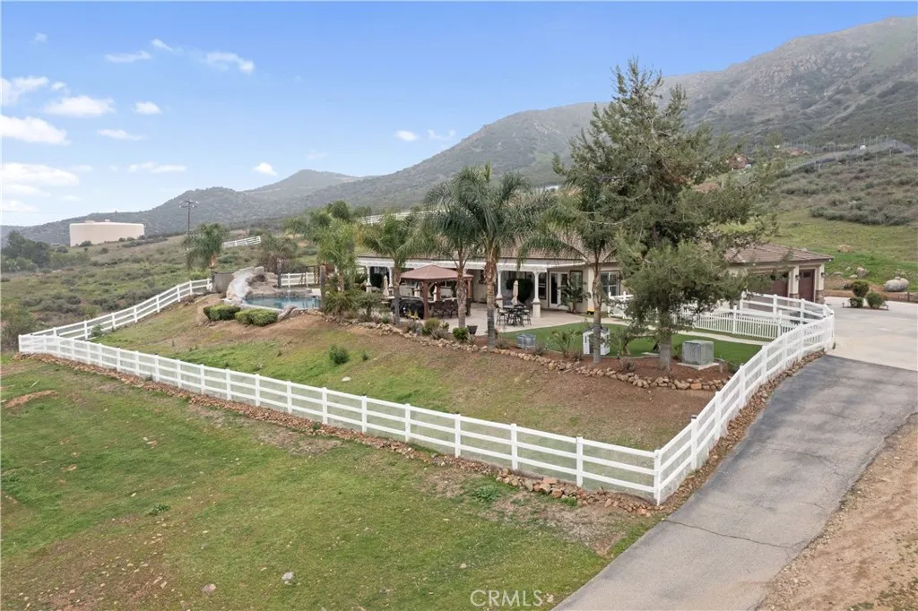 Got Toys? We've Got Room for All of Them! Nestled in the scenic Gavilan Hills, this incredible single-story pool home with a detached casita sits on 5 fully usable acres-perfect for storing RVs, boats, equipment, or all your favorite toys. With 7 bedrooms plus an office and 4 bathrooms, this spacious home offers over 4,570 square feet of comfortable living space. Its ideal for multi-generational living, hosting guests, or anyone who loves to entertain. The heart of the home is a large kitchen with tons of counter space, generous storage, and a bar top for additional seating. Just off the kitchen, you'll find a warm and welcoming family room, perfect for movie nights or hanging out with friends. Theres also a formal dining area and an oversized office, great for working from home or running a business. The primary suite overlooks the backyard and sparkling pool, offering a peaceful retreat with a spacious en-suite bath. Connected under the same roof but with its own entrance, the 960 sq. ft Casita includes a living area, kitchenette, bedroom, and bathroom-perfect for in-laws, guests, or rental potential. Additional highlights include a 3-car attached garage, a 2-car detached storage garage, paid-off solar system, and full property fencing. If you've been looking for space, freedom, and flexibility, this is the one. Don't wait-homes like this don't come around often!