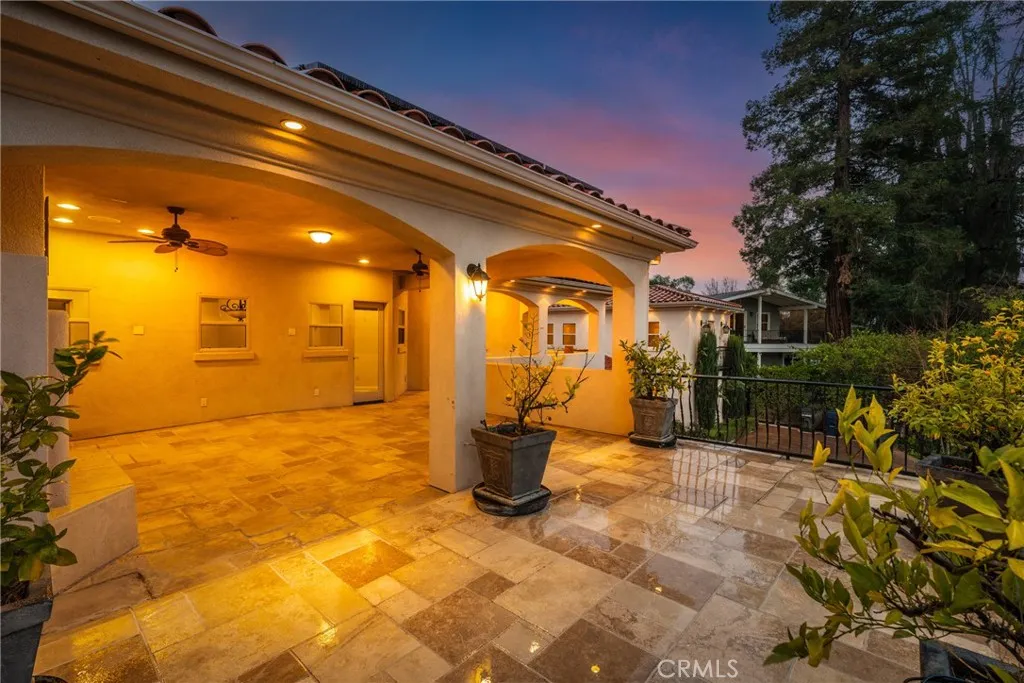 Luxurious Mediterranean Estate with Modern Amenities - Discover this stunning Mediterranean resort-style estate, a perfect blend of timeless elegance, high-end finishes, and modern convenience. Nestled near Smiley Heights and Sunset Avenue, this five-bedroom, four-bathroom home (with an additional two powder/guest bathrooms and a half bathroom by the pool) offers an unparalleled living experience with exquisite architectural details and state-of-the-art features. Key Features: Grand Courtyard & Entryway: Step through the impressive front entrance into a charming courtyard with a beautiful fountain, setting the tone for this exceptional property. Spacious Interior: The home boasts an open-concept design with real wooden beams and large windows (with Hunter Douglas window treatments) that allow for abundant natural light. Gourmet Kitchen & Dry Bar: The chefs kitchen is a masterpiece and an island, complemented by a stylish dry barperfect for entertaining. It has travertine marble floors. Elevator & Smart Home Technology: Enjoy effortless access to all levels with a private elevator, while the Control4 system provides seamless automation for lighting, sound, security, and climate control. Outdoor Oasis: The expansive patio features a built-in fireplace and grill, making it ideal for al fresco dining and entertaining. The patio has multiple dwarf citrus trees on beautiful planters. The beautifully landscaped backyard has a separate fire pit area. Sustainable Living: Equipped with fully paid solar panels, this home is both energy-efficient and environmentally friendly. Thi