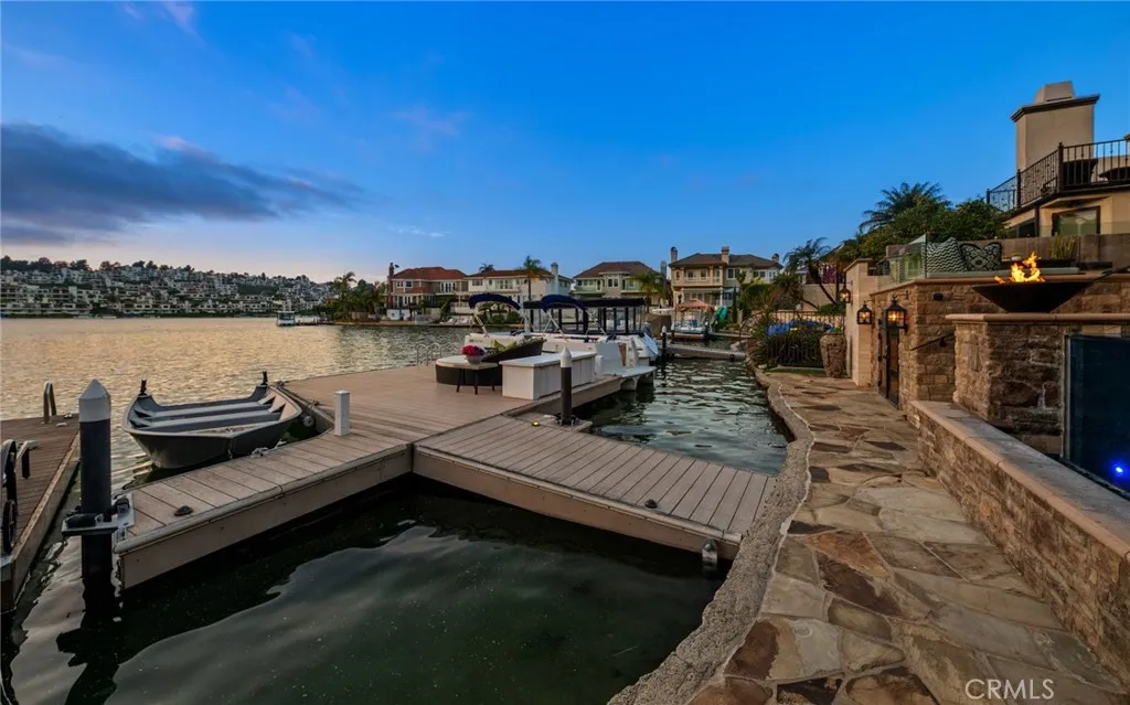 Seize the rare opportunity to experience waterfront living on Lake Mission Viejo. 22791 Tindaya, a dream-like retreat offering breathtaking lake views and a private dock for your Duffy boatright in your backyard. Spanning over 6,000 square feet, this exquisite 5-bedroom estate with an office and gym seamlessly blends Tuscan-inspired elegance with modern luxury. Fully renovated in 2013, it showcases custom, top-tier finishes throughout. From the moment you step inside, you are greeted by soaring ceilings, exquisite stone flooring, and a grand wraparound staircaseyet, the true showstopper awaits just beyond the main living space: a stunning backyard entertainment area with unobstructed lake views. The outdoor oasis features a pool and spa, built-in BBQ, fire pits, and multiple seating areas, all set against the picturesque waterfront backdrop. Indoors, the home continues to impress with the chefs kitchen, a true masterpiece, featuring stainless steel appliances, a spacious island, a walk-in pantry, and stone accent walls. Additionally, the main level includes a guest bedroom, dining room, and gym that could easily serve as a fifth bedroom, while the upper floor boasts three ensuite bedrooms, an office, and a grand media room. The primary suite is pure luxury, complete with dual walk-in closets and vanities, a soaking tub, and a spacious standing showera true retreat within this stunning estate. Additional highlights include a 2-car garage, private gated driveway with parking for three more vehicles, Savant A/V system, and a temperature-controlled wine room. Experience twinkli