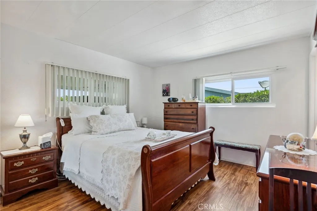 Beautiful Manufactured Home with Land Ownership in Sharondale 55+ Community in Calimesa! Welcome to your forever home in one of Calimesa's most desirable 55+ communities Sharondale! This charming, well-maintained manufactured home comes with land ownership, eliminating the hassle of space rent. Tucked away on in interior street, this private property offers peaceful surroundings with stunning mountain top views. Property Features: 2 Bedrooms | 2 Bathrooms | Spacious Open Floor Plan The living room combo dining room has a built-in hutch and beautiful wood laminate flooring. The upgraded kitchen is spacious kitchen includes dishwasher, disposal, cook top and built-in oven, pull out drawers for pot & pans, full lighting, large pantry and a circular breakfast bar. Kitchen opens to spacious family room that has access to an enclosed California Room, with glass & screens and blinds Plus ...keep walking...into another Screened Patio Room measuring approx. 10X12..with egress doors to your fenced back yard, large enough for BBQing or sitting and relaxing to enjoy the mountain view. The laundry room with washer & dryer and access to carport and workshop. Main bedroom is large and spacious and a main bath with ceramic tile shower and glass doors. Guest bedroom is comfortable and conveniently located off the main living area. Guest bath has a tub. Updated kitchen with cupboards and cabinets newer appliances! Separate indoor laundry room with access to the carport. ** Outdoor Features: Completely fenced backyard with low-maintenance landscaping !!!! Community Amenities (HOA Includes):