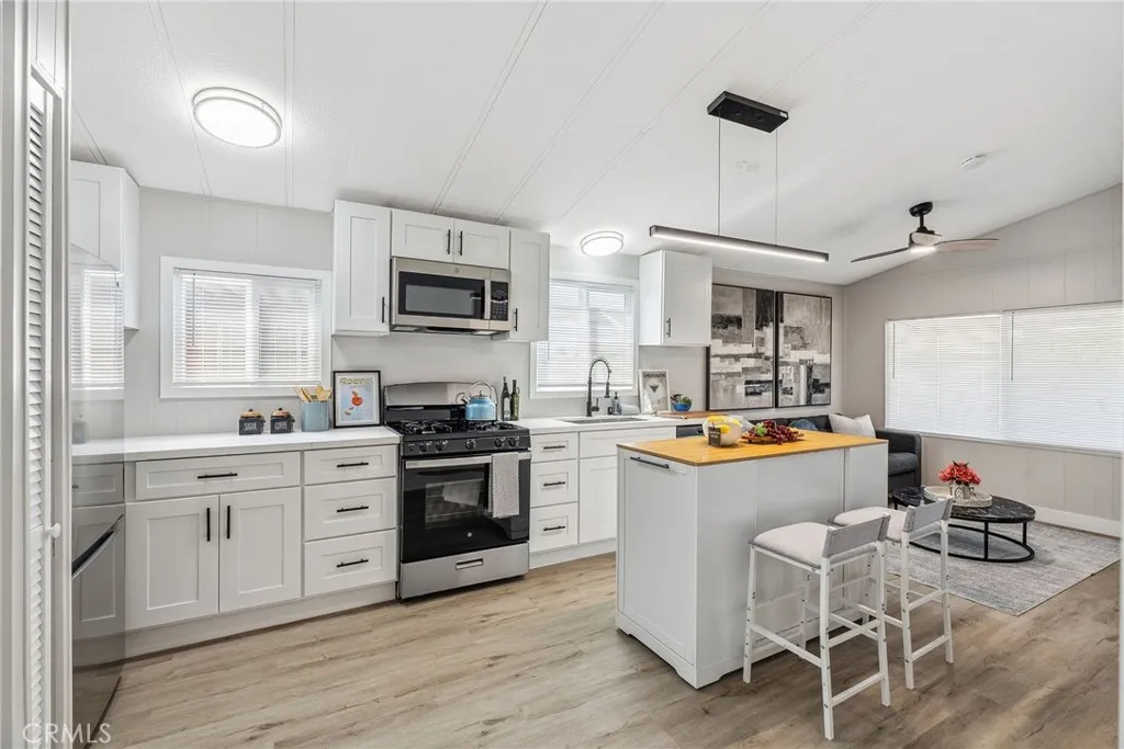 Welcome to this fully renovated manufactured home in a prime location on Orangethorpe Ave, between Brookhurst and Magnolia in Fullerton. This delightful three-bedroom, 2 full bathroom home offers a perfect blend of comfort and convenience with recent updates that make it move-in ready. As you walk in you are greeted with open kitchen and living room. Everything in this home has been redone from the new flooring, bathrooms, kitchen, lights, paint, and more. Kitchen is equipped with new stainless steel appliances, quartz countertops, soft close drawers and a deep stainless steel sink. Enjoy easy access to local amenities, including shopping, dining, and parks, all within a short drive. With its prime location and thoughtful updates, this manufactured home is ideal for anyone seeking an affordable, charming home in Fullerton.