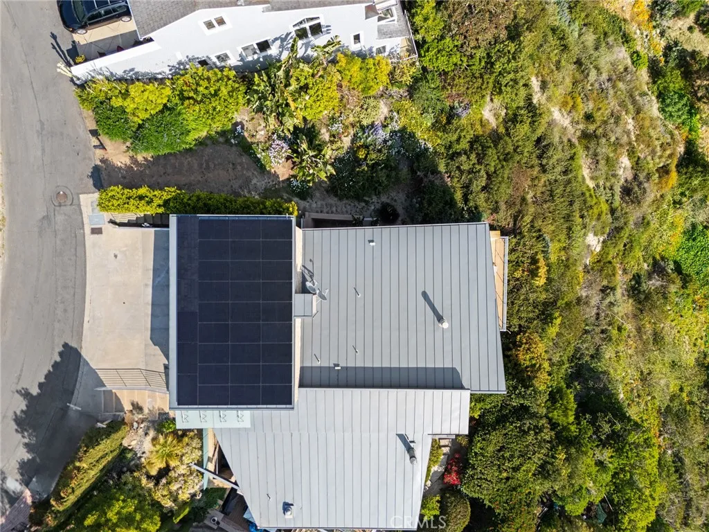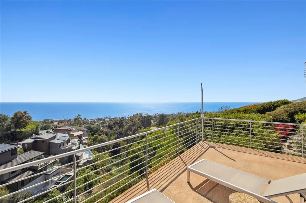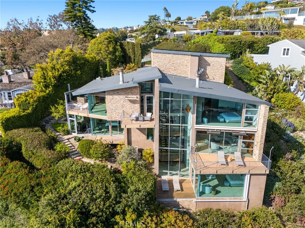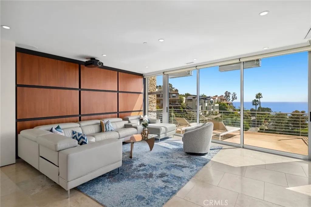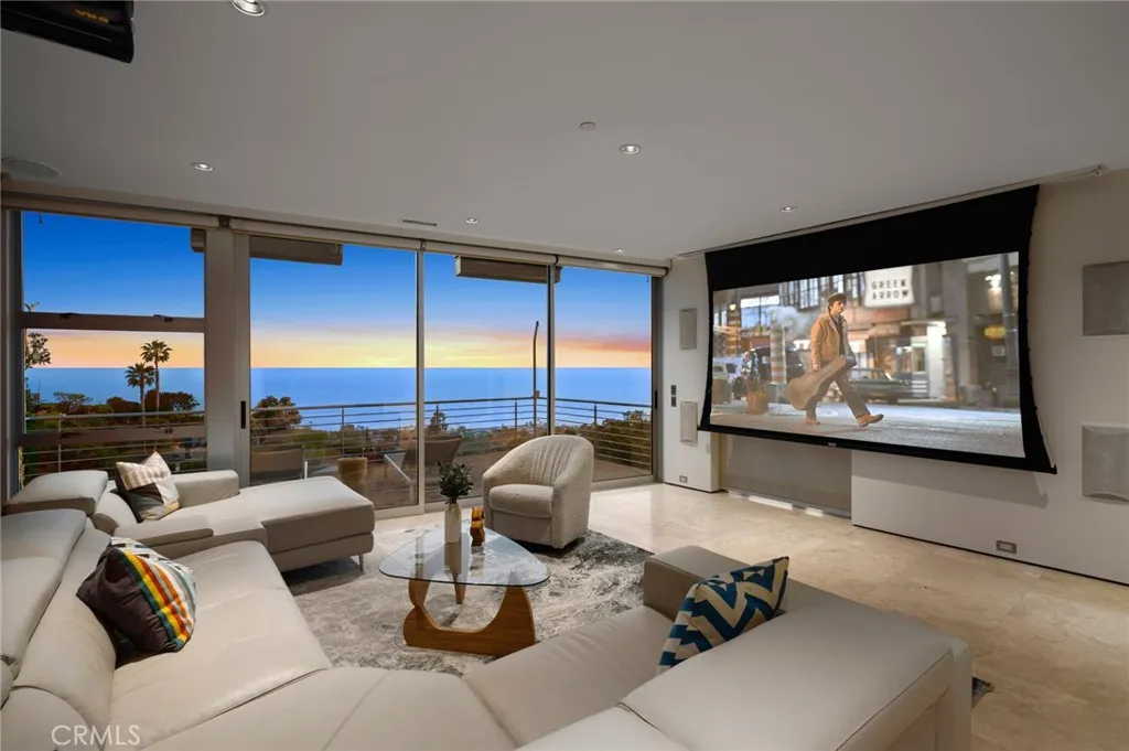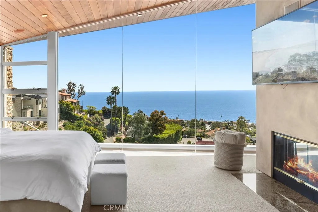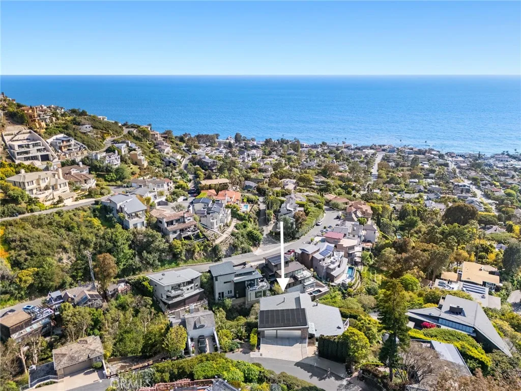 Welcome to a Mark Singer-designed sanctuary where modern sophistication meets coastal serenity. Perched in the highly sought-after enclave of Woods Cove, this one-of-a-kind 4-bedroom, 4,400 SF architectural marvel offers sweeping, unobstructed views of the Pacific Ocean, Catalina Island, and the pristine coastline of Laguna Beach. From the moment you step through the front door, you're enveloped in floor-to-ceiling ocean vistas, soft coastal breezes, and refined finishes that evoke the indulgence of a five-star resort. Thoughtfully upgraded with newly installed and fully owned Tesla solar panels, the home offers cutting-edge energy efficiency without compromising luxury. The main level hosts a breathtaking primary suite with expansive walls of glass framing the endless seascape and twinkling city lights. The spa-inspired ensuite bath features heated floors, vaulted ceilings, and timeless elegance. A true chefs kitchen awaits with quartzite countertops and backsplash, a large central island, and top-tier appliances including a Hestan range, Liebherr refrigerator, Cove dishwasher, and built-in two-drawer refrigerator. A spacious walk-in pantry adds convenience and style. Seamless indoor-outdoor living is at the heart of this home, with a tranquil water feature leading to a large entertaining deckideal for sunset dinners or lively gatherings under the stars. The mid-level offers a second living area for entertaining, complete with a built-in projector, expansive ocean-facing deck, and a climate-controlled 800-bottle wine cellarperfect for movie nights or intimate tastings. Eac