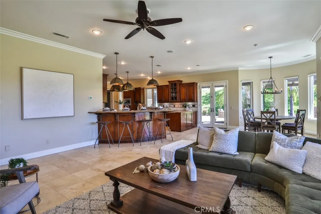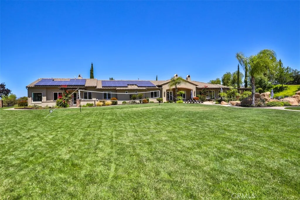 Sprawling Single Story Gated Estate in the Heart of Temecula Wine Country with Resort Style Backyard. Over 6,000 Sq Ft Residence on Five Acres. Incredible Location @ Rancho California Road Wine Trail, Walking Distance to Several Award Winning Wineries. Car Enthusiasts Bring Your Treasures! Nine Car Garage Awaits! Soundproof Room for Musical Enthusiasts and Gorgeous Wine Cellar Awaits Your Friends and Wine Enthusiasts. Multiple Patios, Large BBQ Island, Outdoor Fireplace and Two Firepits. Huge Impeccably Maintained Lawn Ready for All The Lawn Games and Entertainment. Spectacular Salt Water Pebble Tec Swimming Pool Includes Large Waterslide, Bar, Reef Entry, Waterfalls and Oversized Spa. This Remarkable Residence Includes Oversized Primary Suite with Retreat, Luxurious Bathroom, Spacious Walk-In Closet with Organizers and Dual Fireplace. This Home Offers Four Fireplaces. Huge Den/Bonus Room is Currently Used as a Sixth Bedroom, and it's Adjacent to Wonderful Home Theater. Enormous Chef's Kitchen Includes Massive Center Island. Watch the Wine Country Hot Air Balloons Soar from Your Backyard. Approximately 1.5 Acres Are Beautifully and Fully Landscaped and 3.5 Acres are Currently All Natural, Ready for Your Vineyard, Orchard, Equestrian Facilities or an Ultimate Playground?! No HOA, low property tax rate and paid solar with 72 solar panels are included! Seller might consider selling the property partially or fully furnished.