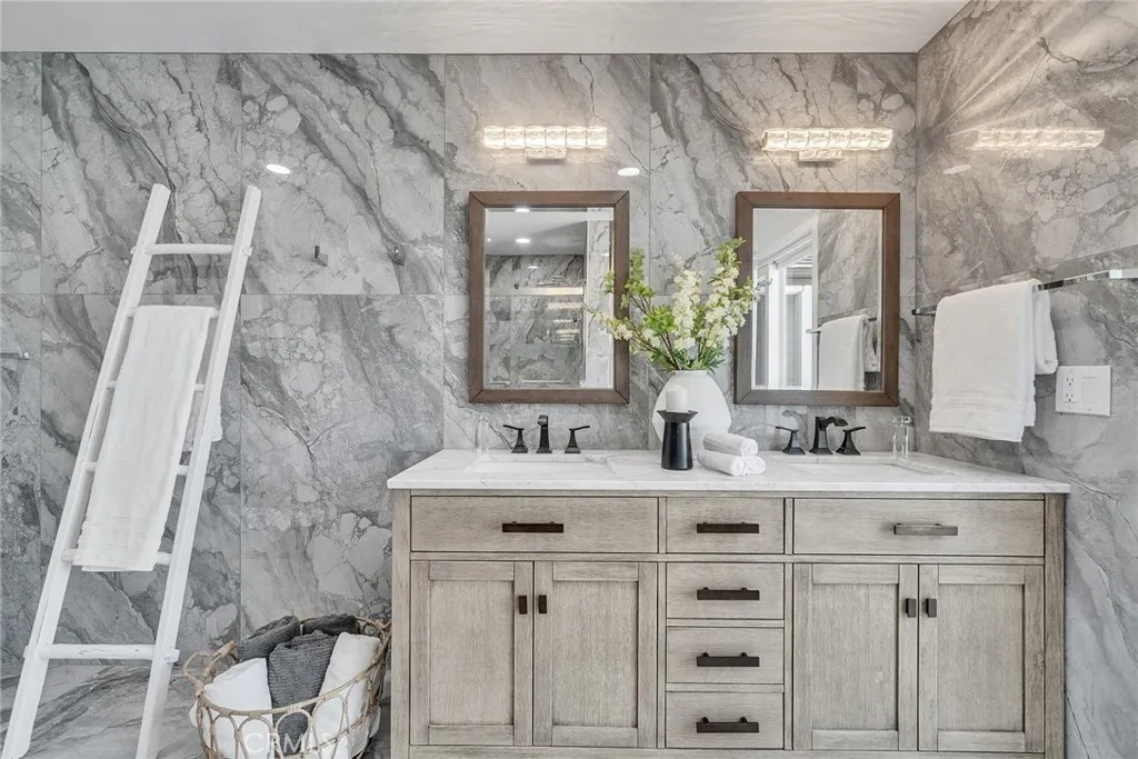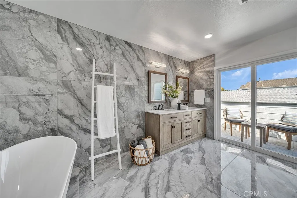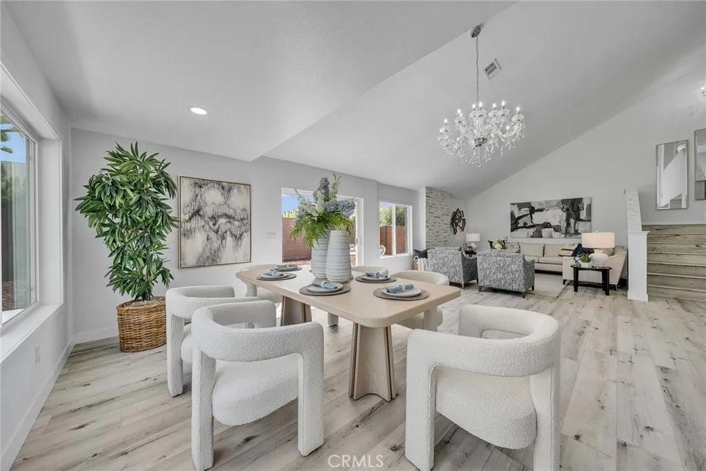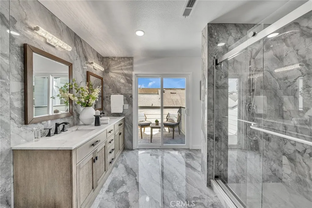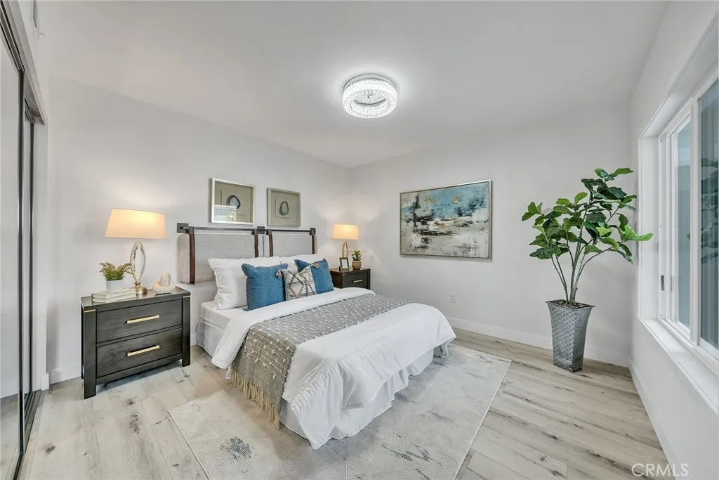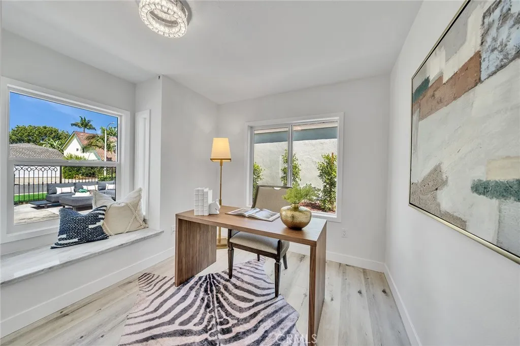 Truly one-of-a-kind and the only home of its kind in the area, this stunning, newly renovated property is located in Irvines desirable Northwood neighborhood. This extensively upgraded 4-bedroom, 3-bathroom home includes a 237-sqft permitted addition, expanding the total living space and enhancing its unique, functional layout. Featuring a permitted two downstairs bedrooms and full bathroom, it's perfect for multigenerational living or a private guest suite. Set on a spacious 4,815 sqft lot, the expanded 2,222 sqft home boasts striking curb appeal with a gated front yard, mature flowering shrubs, and low-maintenance landscaping. Step through the luxury modern front door and be greeted by a bright, open interior featuring soaring vaulted ceilings, new vinyl flooring, and expansive dual-pane windows that bathe the space in natural light. The open-concept kitchen is a chefs dream, designed with high-end European-style cabinetry, quartz countertops, a large center island with breakfast bar, designer backsplash, and premium stainless steel appliances including a professional-grade gas range. Adjacent living and family rooms are anchored by a stunning floor-to-ceiling stacked stone electric fireplace, perfect for relaxing or entertaining. The main level also includes two bedroomsone ideal as a home office with bay windowand a beautifully designed full bathroom with sleek tile work, floating vanity, LED mirror, and modern finishes. Upstairs, retreat to the luxurious primary suite, complete with a private balcony, walk-in closet, and spa-like en-suite bath with a freestanding soaki