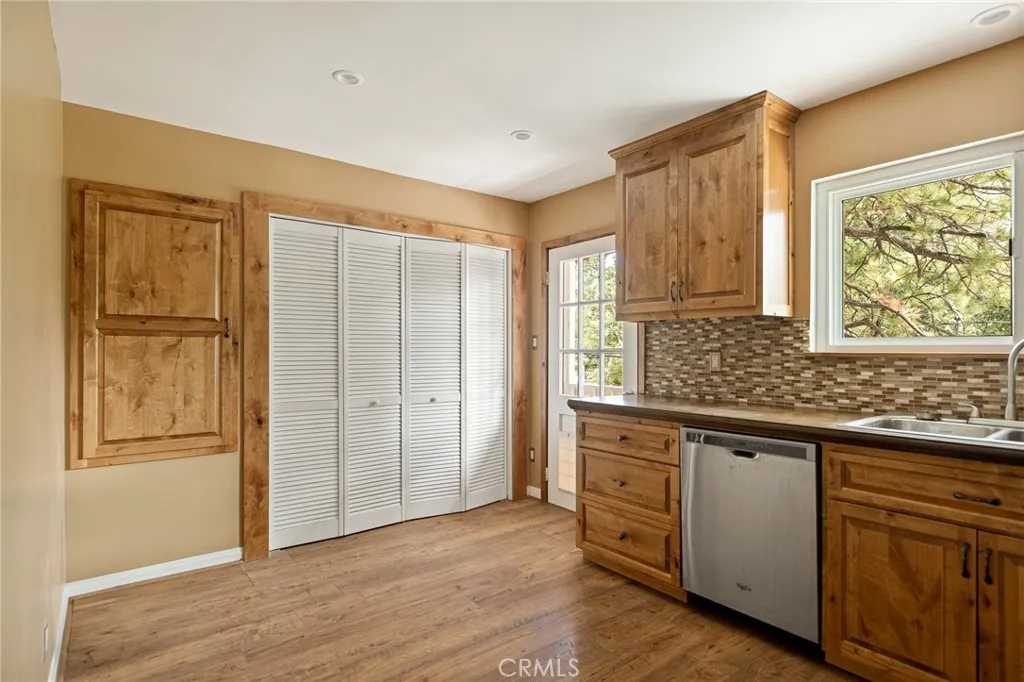 Owner anxious! Located in beautiful Arrowbear. This charming 3-bedroom, 2 bath home backs up to the National Forest, offering privacy and nature at your doorstep. Featuring newer double pane windows throughout. Spacious kitchen with ample cabinet space, a convenient pantry and concrete countertops for a rustic touch, comes complete with refrigerator and stove included. Newer laminate wood flooring throughout. Warm up to the inviting fireplace for chilly mountain evenings with a cozy ambiance. Enjoy stunning natural rock scenery, a large back yard with wood fencing. Perfect for full-time living or a Mountain vacation retreat. Just minutes to ski slopes, Arrowbear Park, hiking trails, shops and dining. This property offers comfort, location, and outdoor lifestyle all in one!