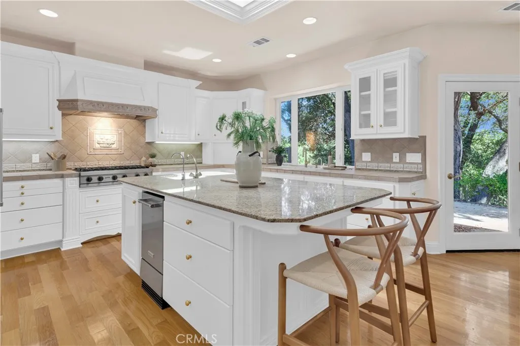 Magnificent West Side Templeton Estate, complete with its own separate workshop, all gracefully located among the rolling hills of the exclusive Petersen Ranch neighborhood. Crafted with remarkable attention to detail, this custom built, one-owner residence offers an uncommon blend of sophistication, serenity, and enduring architectural beauty, all just moments from renowned wineries, distilleries, music venues, and other premier Central Coast destinations. A gated entrance announces your arrival to a property of rare refinement. The winding drive reveals immaculately maintained grounds, generous guest parking, a bocce court with an elevated viewing deck perfect for sunrise contemplation or sunset gatherings, a fragrant rose garden, and a tranquil courtyard oasis that hints at the elegance within. Step through the private entry gate and be welcomed into a world of livable luxury. The main Grand Room showcases soaring ceilings, exquisite flooring, and abundant natural light, framed by custom glass doors that open to the landscape. A warm fireplace and custom built-ins create a setting of comfort, grace, and timeless appeal. At the heart of the home lies the chefs kitchenan inspired culinary haven equipped with premier stainless appliances including a Viking range, double ovens, warming drawer, and professional-grade ice maker. A generous center island serves as both workspace and gathering point, enhanced by a skylight that bathes the room in soft illumination. Adjoining spaces include a spacious pantry, a charming dinette with custom shelving and built-in desk, as well as a