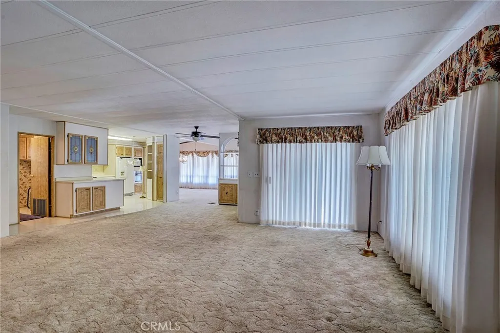 2074 sq ft, Triple-Wide Home, Quiet location across from the guest parking. One of the larger floor plans at the Prestigious Anaheim Shores Estates. This family park has large green belts and wider streets. The clubhouse amenities include a pool, spa, clubhouse with kitchen, card room, billiard room, multipurpose room, BBQ, and covered picnic area. The formal living room and formal dining room have beamed vaulted ceilings and a built-in China cabinet/hutch. The kitchen has lots of cabinets and counter space and is open to the formal dining room and family room. The family room has a slider to the patio. The master bedroom is huge with a double walk-in closet with mirror closet doors and another closet near the master bathroom. The AC/Furnace/oven, and roof have been replaced. Move-in condition. Centrally located to the 91 and 5 Freeways!