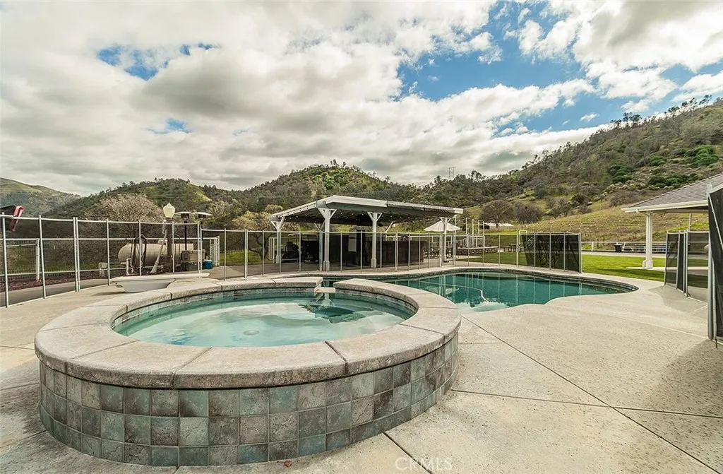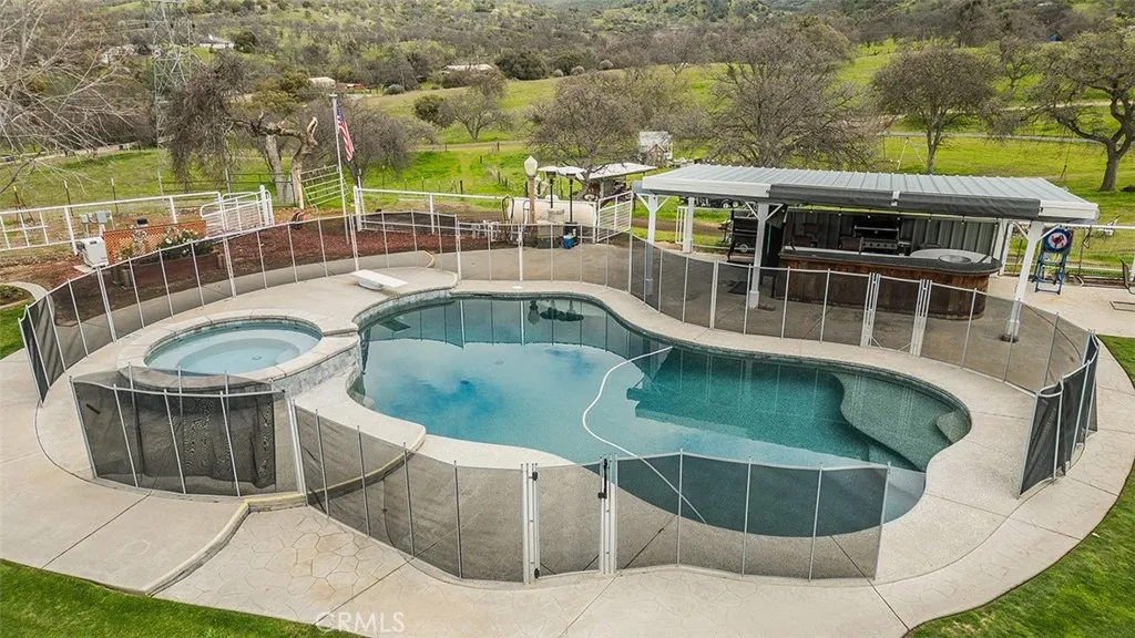 Nestled on 40 acres of picturesque land with sweeping views of the foothills and rolling pastures, this exceptional 5-bedroom, 4.25-bathroom home offers luxury and versatility. The expansive property includes a greenhouse, swing set, firepit, fruit trees, storage containers, a carport/workshop, and is thoughtfully parceled for animal use. The outdoor area is designed for relaxation and entertainment, featuring a pool, spa, and BBQ area perfect for hosting gatherings or enjoying tranquil evenings. Downstairs, this extraordinary home has 3 bedrooms-one which includes a kitchenette, 2.25 bathrooms-one with easy pool access, a laundry room, and 3 bonus spaces with potential for an ADU. Upstairs includes a master suite and an additional bedroom with a full bathroom and balcony. The expansive master suite features two large walk-in closets, a coffee/wet bar, and an attached balcony overlooking the serene landscape. An adjacent bonus space provides options for an office, gym, nursery, or hobby room. Upon entering the home, you will find a stunning family area with large living room, dining room, and kitchen. The chef's kitchen boasts a large pantry and an additional utility room, providing abundant storage and workspace for culinary endeavors. This unique home seamlessly blends luxury living with functional spaces, all set against the backdrop of natural beauty. Whether you're seeking a private retreat or a versatile family estate, this property offers endless possibilities.