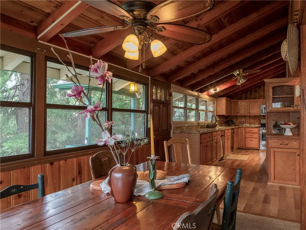 This unique and charming mountain home exudes warmth and character, featuring a classic pine interior, indoor hot tub made for fun and a brick fireplace with wood-burning insert. Located just moments from Lake Drive, you can easily enjoy local coffee, restaurants and shopping. With a thoughtfully remodeled and well-updated modern kitchen, it strikes a combination of old-world allure and contemporary living making this mountain property truly special. Bedroom one is a cozy nook, perched above the open beamed living room, while a second bedroom is on the main level and has a large walk-in closet. Unwind on the expansive deck; or enjoy endless fun in a unique treehouse, thoughtfully equipped with electricity, bunk beds, two lookout posts connected by a bridge, a zip line and slide. This extraordinary play fort offers a magical retreat filled with adventure! Nestled away from the hectic pace of daily life but a quick drive from the city below, this property provides a serene getaway while still being close to various conveniences. The newly rebuilt Goodwins Market presents a delightful selection of rare and gourmet foods to elevate your mountain retreat experience. Whether you're looking for a full-time home, weekend retreat or vacation rental, this captivating home promises to create a lifetime of cherished memories.