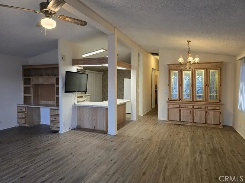 One of Yucaipa"s most desirable 50+ community. Beautiful triple wide. View of the mountains through the large windows in the living room. Open floor plan to dining area and kitchen. separate office area in living room with built in desk. Newer laminate flooring and carpeted flooring and newer carpet in bedrooms. Cathedral ceiling. Dining area with built in lighted hutch. Kitchen has separate dining area and lots of counter space plus lots of storage. Dual sinks, filtration system. Tile counter tops. Gas range, side by side refrigerator. Slider in Kitchen area to the 3rd bedroom. Could also be used as an office/craft or what you want it to be. Has a closet and electric heater. Has it's own entrance to outside. Larger bedrooms, mirrored closet door in Master bedroom. walk in closet with two entrances, Shower over tub. Bidet, toilet. marble counter, dual sinks. Guest bedroom has large walk in closet. Ceiling fans. Dual pane windows, Individual extra large laundry room, with more storage and a vanity. Deep sink. chaulk board and pin bulletin board. Entrance to driveway. Wait, There's more, 2 sheds for extra storage too. Partially fenced Back yard, ready for your imagination to plant and landscape. Appliances included except for no washer. TV in living room also included. Home has both swamp-evaporative cooler and central heat and air. Sprinkler drip system. 3 parking spaces. Community features include remote gated access, pool, spa, clubhouse, dog park, and RV parking! Space rent includes water, sewer, trash paid. "Important" Yucaipa Land Yacht Harbor is an RV club and the adve