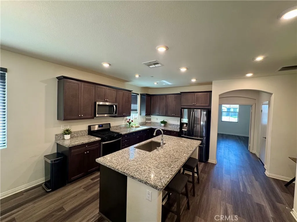 Back on the market after a lengthy escrow buyer could not perform. This single story home is tucked away on a quiet cul-de-sac in Hesperia and was built in 2018. Offering 4 bedrooms, 2 bathrooms, and approximately 1,835 square feet of living space, this home features vinyl wood flooring throughout the main living areas and a bright, open concept layout ideal for modern living. The kitchen provides generous counter space and ample cabinetry and opens seamlessly to the family room, making it perfect for everyday living and entertaining. The private primary suite offers a comfortable retreat, while the remaining bedrooms are well sized and versatile. The owner also left wiring in place for potential surround sound speakers in the family room, adding to the homes entertainment appeal. Additional highlights include an attached 2 car garage, tile roof, and attractive exterior stone faade accents. Upgrades include a top of the line Rheem tankless water heater, whole house fan, and a Chamberlain garage door opener with smartphone compatibility, all included with the home. The backyard features an extra large concrete patio, ideal for creating your own California room, along with a spacious yard offering potential RV access. The approximately 6,882-square-foot lot includes low maintenance desert landscaping in the front yard. Conveniently located near shopping, dining, and community amenities, this home offers comfort, functionality, and accessibility.