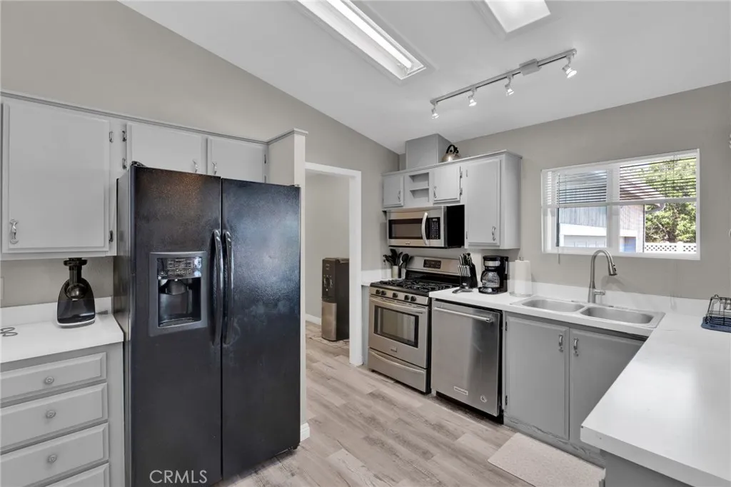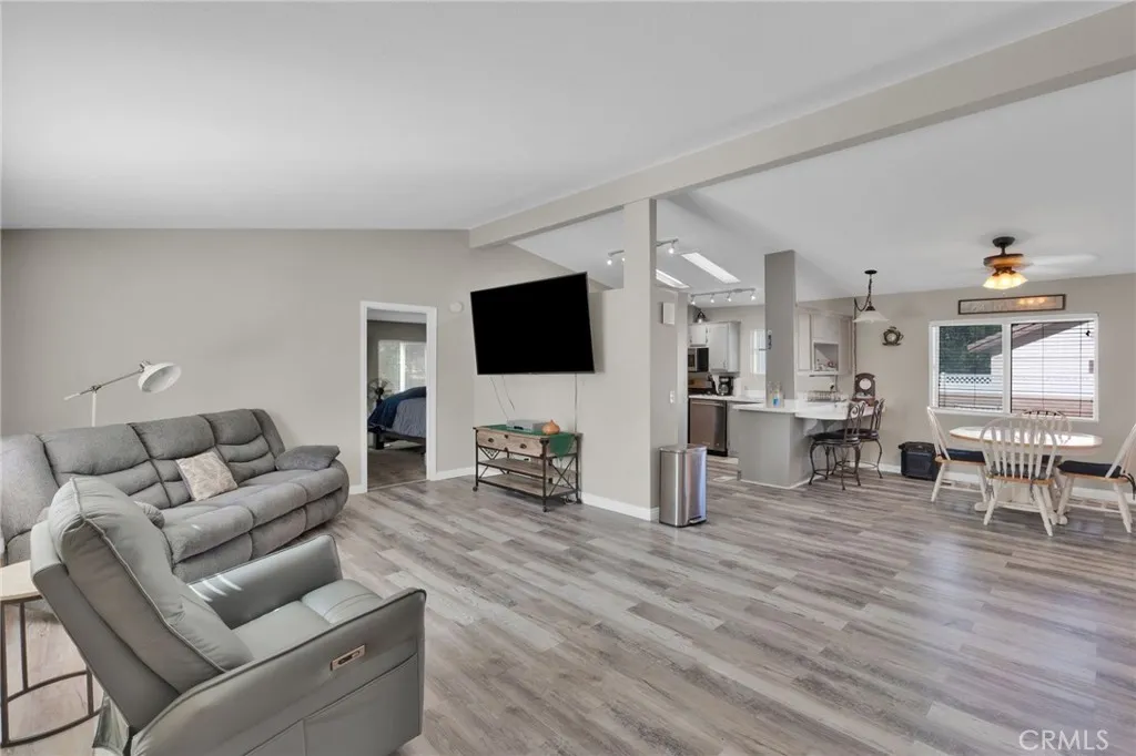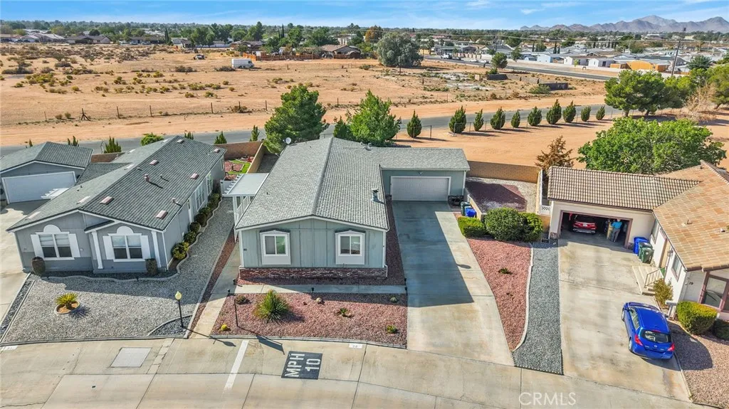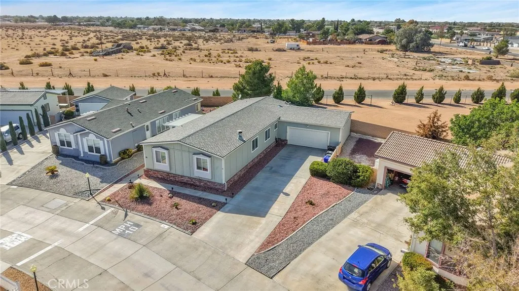 Welcome to this beautifully maintained manufactured home located in the Vista Del Rosa senior community (55+), Apple Valley. This spacious home offers 4 bedrooms and 2 full bathrooms in a split floor plan, with 1,782 sqft of comfortable living space. Enjoy a charming, covered porch. Inside, you'll find a warm entry with updated flooring, a large living room, and a cozy family room with a corner fireplace featuring a mantle and tiled hearth. The kitchen is bright and functional, the primary bedroom is roomy and inviting, with a private bath featuring a garden tub and step-in shower. On the opposite side of the home are three additional bedrooms and a second full bath. The home also includes a 2 car- attached garage with access to the back yard, dual-pane windows throughout. The home is part of a gated 55+ community, which offers amenities and a mature neighborhood feel. Don't miss this opportunity to own a generous, well-designed home in Vista Del Rosa-a place you'll be proud to call yours.
