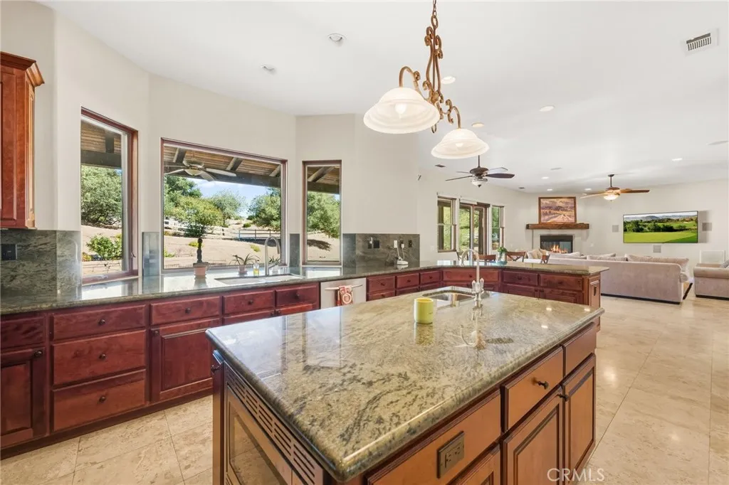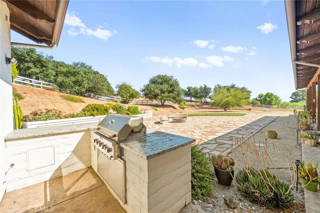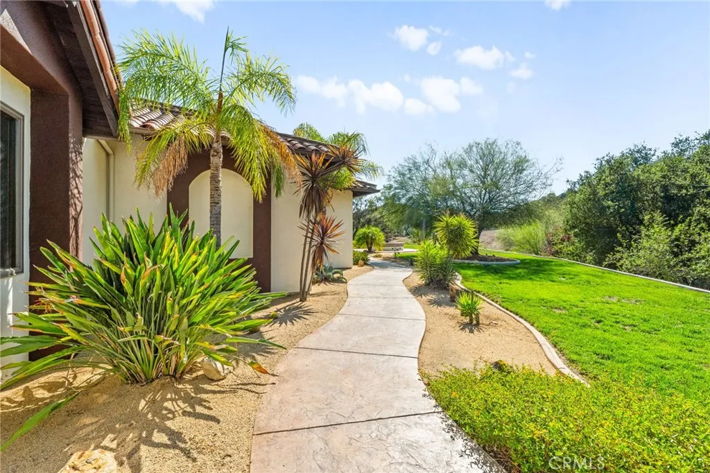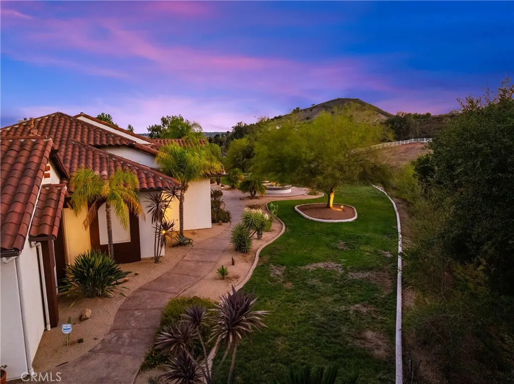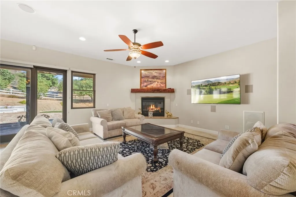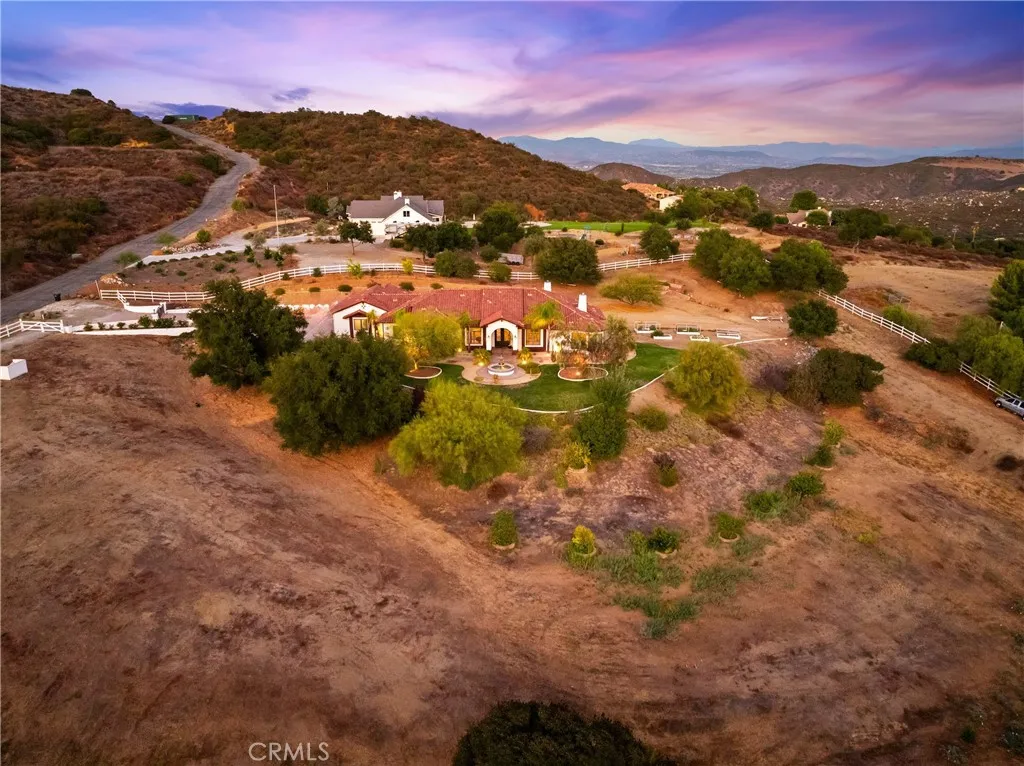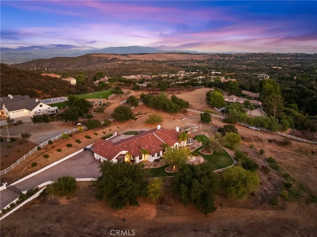 Set on 5.85 acres of mostly flat, usable land, this perfect single story, 3,492 square foot custom estate offers 4 bedrooms and 3.5 bathrooms, located close to the entrance of La Cresta. The automatic gate opens to over 7,000 square feet of custom reinforced concreteperfect for RVs, large vehicles, or ample guest parking. Inside, youll find 10-foot ceilings, 8-foot solid mahogany doors, and 18-inch travertine flooring. The gourmet kitchen is designed for both everyday living and entertaining, with cherry cabinetry, a spacious island with prep sink, wine refrigerator, and premium appliances including a Viking cooktop, KitchenAid double convection ovens, built-in refrigerator, and dishwasher. Formal living and dining room areas feature walnut floors and coffered ceilings with ambient lighting. The primary suite offers a spa-like walk-in shower, jetted soaking tub, dual closets, and elegant finishes. Spend time in the 1,130-square-foot 3 car garage that includes a workbench, attic access, unique ceiling fan, and a 30-foot depth to easily accommodate large trucks. Outdoors, enjoy a built-in Kitchenaid BBQ, fire pit with ambient lighting, terraced landscaping, and a covered patio perfect for year-round gatherings. A 22kW Generac generator provides automatic backup power for peace of mind. 21977 Paseo Chico delivers the best of country living in the prestigious community, La Cresta, with quick access to wineries, restaurants, and shops.