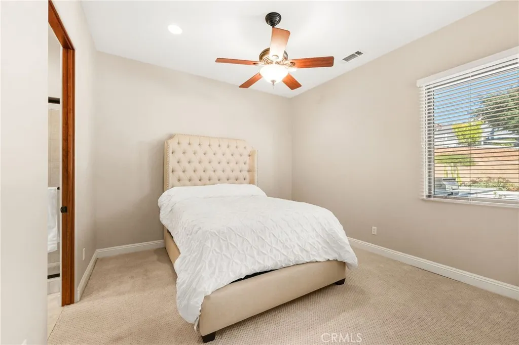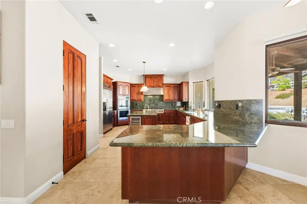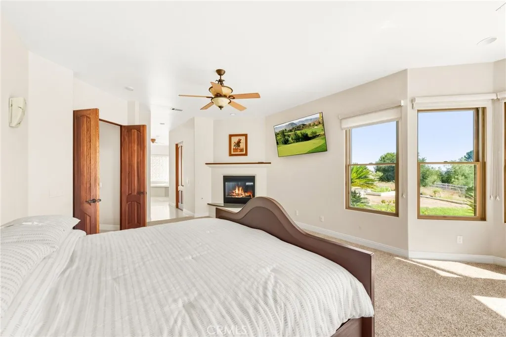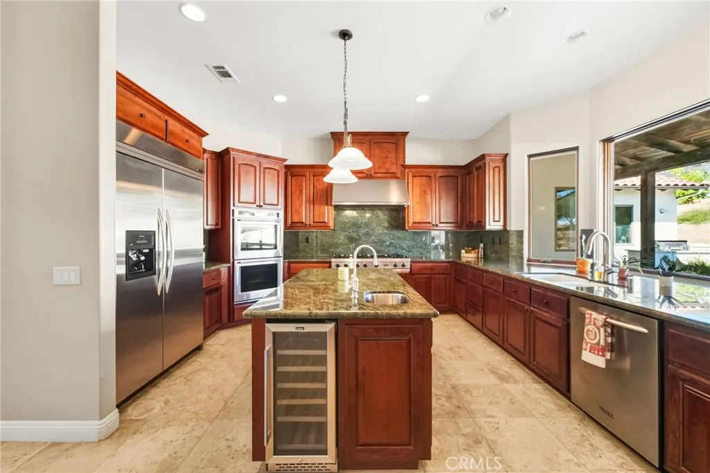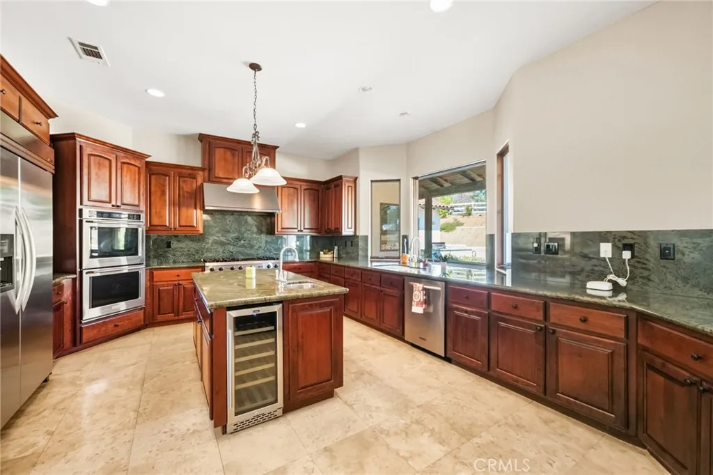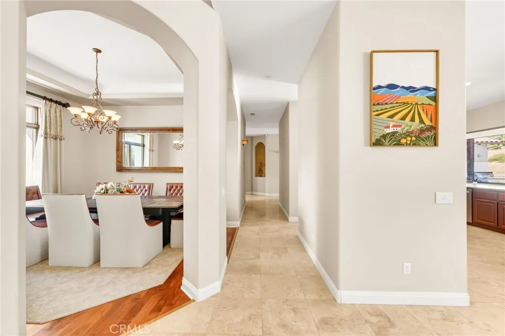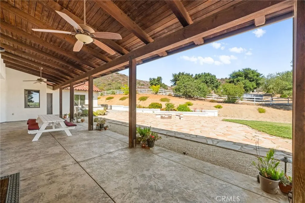 Set on 5.85 acres of mostly flat, usable land, this perfect single story, 3,492 square foot custom estate offers 4 bedrooms and 3.5 bathrooms, located close to the entrance of La Cresta. The automatic gate opens to over 7,000 square feet of custom reinforced concreteperfect for RVs, large vehicles, or ample guest parking. Inside, youll find 10-foot ceilings, 8-foot solid mahogany doors, and 18-inch travertine flooring. The gourmet kitchen is designed for both everyday living and entertaining, with cherry cabinetry, a spacious island with prep sink, wine refrigerator, and premium appliances including a Viking cooktop, KitchenAid double convection ovens, built-in refrigerator, and dishwasher. Formal living and dining room areas feature walnut floors and coffered ceilings with ambient lighting. The primary suite offers a spa-like walk-in shower, jetted soaking tub, dual closets, and elegant finishes. Spend time in the 1,130-square-foot 3 car garage that includes a workbench, attic access, unique ceiling fan, and a 30-foot depth to easily accommodate large trucks. Outdoors, enjoy a built-in Kitchenaid BBQ, fire pit with ambient lighting, terraced landscaping, and a covered patio perfect for year-round gatherings. A 22kW Generac generator provides automatic backup power for peace of mind. 21977 Paseo Chico delivers the best of country living in the prestigious community, La Cresta, with quick access to wineries, restaurants, and shops.