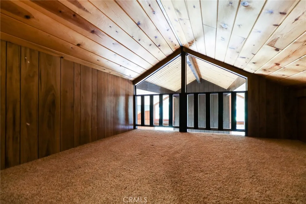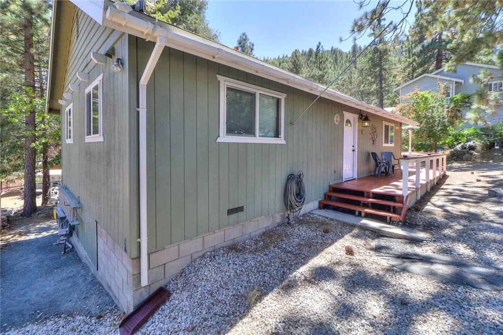 JUST IN TIME FOR THE WINTER!!! Peaceful 2 Bed + Loft, 1 Bath Mountain home on large lot with mountain views! This well-maintained, beautiful home shows true pride of ownership and is ready for you to make it your own! Set back from the street on an over 7,500 square foot lot, this home provides a tranquil getaway with plenty of room to add on, build an ADU, or trailer/ RV parking. Souring old growth trees provide privacy, and the freshly re-stained oversized wrap-around deck is perfect for enjoying the outdoors morning, noon and night. Entering through the front door and a few steps down the hall, the family room stuns with soaring vaulted, beamed ceiling and nearly floor to ceiling south facing windows featuring a wonderful tree-lined mountain view. Warm yourself by the crackling wood burning fireplace after a day on the slopes at nearby Mountain High resort. The thoughtfully designed kitchen has open sight lines to the family room with stone countertops, two-tone cabinetry with hardware, dishwasher, stove and oven. Down the hall are two good sized bedrooms and a full bathroom with shower and tub, clean and well maintained. Up the ladder is a bonus loft, with open peek-a-boo terrace view of the family room and built in storage. The hall contains a laundry closet with additional storage. Conveniently located near Wrightwood Village and Mountain High, this amazing mountain retreat is ready for you! Do not delay, schedule a showing today!