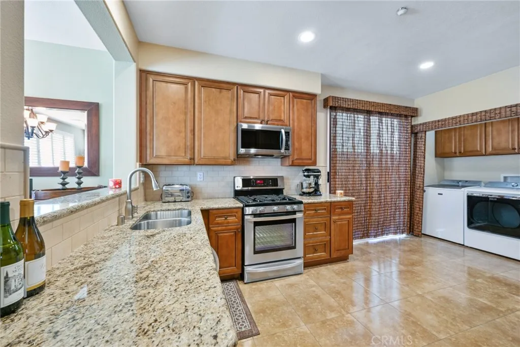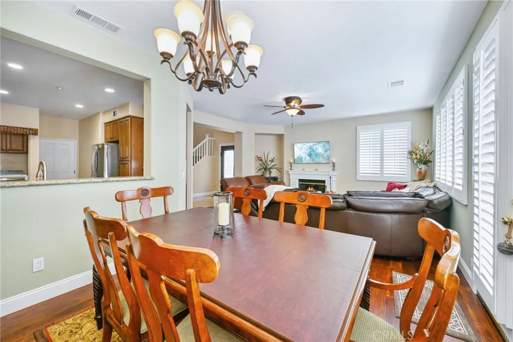 Discover a beautifully upgraded home in the prestigious gated community of Fairways at Alta Vista. This spacious 3-bedroom, 2.5-bathroom residence offers 1,750 square feet of living space with a large bonus room and a peek-a-boo golf course view. Step through a spectacular custom iron door with a glass partition panel into a world of elegance and comfort. The living room, adorned with hardwood floors, a gas fireplace with a mantle, and plantation shutters, invites you to relax and unwind. The dining room, with its chandelier and door to the backyard, offers a perfect space for entertaining guests. As you explore further, you'll find a gourmet kitchen equipped with a modern flair, including granite countertops, a subway tile backsplash, a stainless steel sink, stainless LG appliances, and an adjacent inside laundry room. The spacious bonus room, with its peek-a-boo golf course view, carpet, cathedral ceilings, ceiling fan, and plantation shutters, offers a versatile space for relaxation or entertainment. The primary suite, with its luxurious en-suite bathroom, is a true retreat. The bathroom features a dual vanity with granite countertops, tile floors, a tile shower with a mosaic inlay, a bench seat and large glass doors, and a mirrored walk- in closet. The bedroom itself boasts cathedral ceilings with a ceiling fan. Two additional bedrooms offer carpeted floors, ceiling fans, mirrored wardrobe closet doors, and custom shutters. The hallway features a built-in linen closet and a Nest thermostat. The shared hall bathroom features tile floors, a tub/shower combo with tile inla