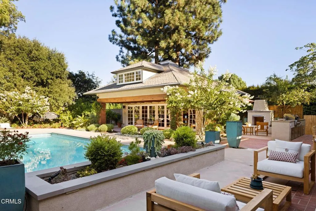 Nestled in Pasadena's most coveted neighborhood of Linda Vista, this refined estate offers a rare blend of architectural elegance, privacy and natural beauty. Set on a flat half acre of manicured grounds sits this 3,625sf, four bedroom home. Step into a grand light filled living room and sun room where expansive glass doors frame tranquil views of the sparkling pool and lush patios, perfect for seamless indoor-outdoor living and entertaining. With formal living and dining room, den/office, a thoughtfully upgraded kitchen and breakfast area, den and three cozy fireplaces, the single story layout is elegant yet functional. The backyard is a true oasis, complete with a sparkling pool and spa, full outdoor kitchen, a built in fireplace, and expansive patios, perfect for year round entertaining. An impressive 1285sf additional structure offers endless possibilities for a guest house, studio or home office.With timeless elegance and exceptional amenities, this property is a rare gem that blends luxury and comfort in equal measure.