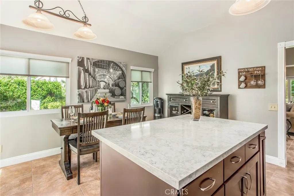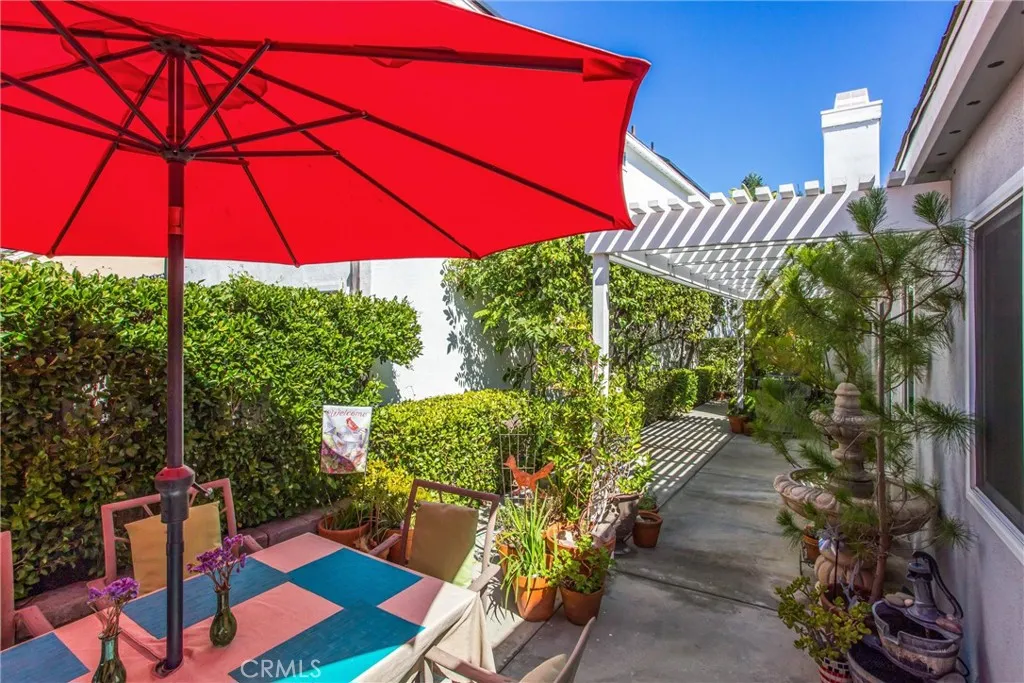 Nestled in the highly desirable Evergreen Ridge neighborhood of Mission Viejo, this beautifully remodeled Cape Cod-style single-story home blends timeless charm with sophisticated modern upgrades. With two spacious bedrooms and two renovated bathrooms, this residence offers comfort, functionality, and style. From the moment you arrive, the curb appeal is undeniable, featuring a charming white picket fence, mature landscaping, a lush lawn, and a welcoming front porch that invites you inside. Step through the door and experience a sense of space and light, with soaring vaulted ceilings, recessed lighting, plantation shutters, and newer interior paint throughout. The living room exudes warmth with a cozy fireplace and a picturesque bay window that frames the front yard perfectly. At the heart of the home is a fully remodeled kitchen, showcasing updated fixtures, quartz countertops, a deep farmhouse sink, designer backsplash, custom cabinetry, and a center island. The adjacent dining area opens to a serene and private backyard retreat, where the patio and sanctuary-style side yard create the perfect setting for relaxing or entertaining. The primary suite is a tranquil escape, complete with vaulted ceilings, large windows with garden views, and a spa-inspired ensuite bathroom featuring a dual-sink vanity and custom step-in shower. The secondary bedroom is bright and airy, while the beautifully updated guest bathroom impresses with stunning designer tile and a classic pedestal sink. Additional highlights include an attached two-car garage with laundry, a private driveway, and a l