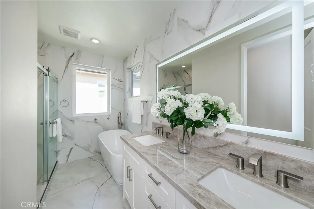 5 BED + 2 Main Master Room (down and up)+ LOFT | GUARD-GATED ALTAIR Stunning two-story home in the prestigious 24-hour guard-gated Altair community. Features 4 bedrooms, 4.5 baths, a spacious loft, and 2 Main Mater Room ideal for a home office and loft . The gourmet kitchen boasts a large island, built-in refrigerator, 6-burner cooktop, and ample cabinets, opening to the dining and living areas for seamless entertaining. First-floor bedroom with en-suite bath is perfect for guests. Upstairs includes a loft, laundry room, two secondary bedrooms, and a luxurious primary suite with dual walk-in closets, soaking tub, and separate shower. Designer upgrades include hardwood floors, crown molding, and plantation shutters. Professionally landscaped backyard provides a private space for outdoor gatherings. Altair offers resort-style amenities including pools, spas, parks, clubhouses, tennis courts, and playgrounds. Conveniently located near Great Park, Woodbury, Irvine Spectrum, shopping, dining, John Wayne Airport, and award-winning Irvine schools.