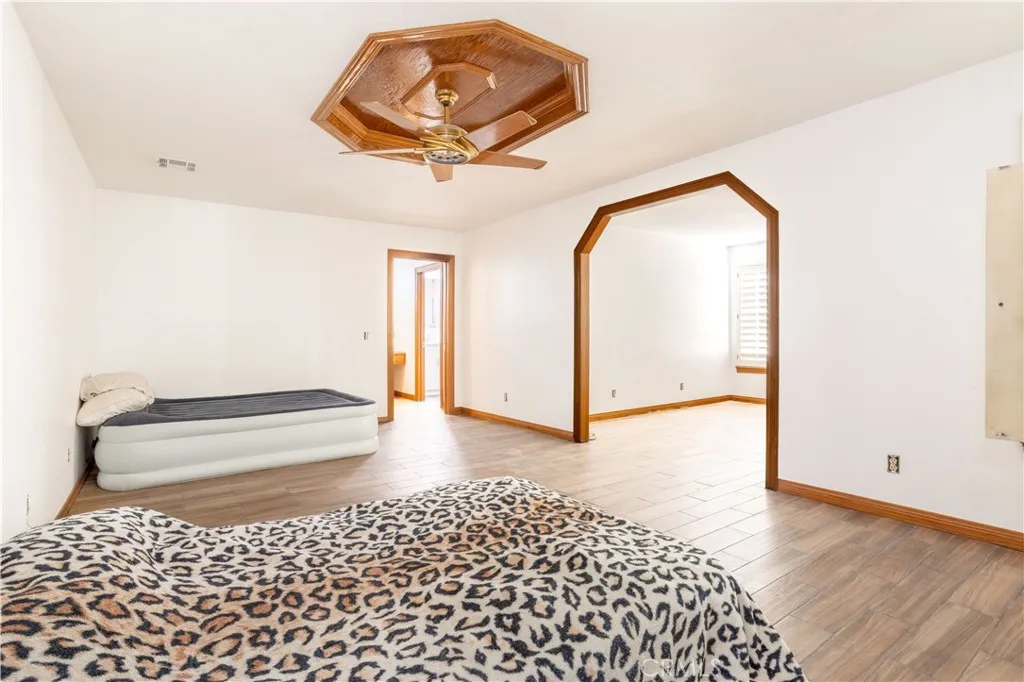 This great custom Home in West Palmdale, features 4 bedrooms, 4 bathrooms, and approximately 3,020 sq. ft. of comfortable living space. The home offers a spacious living room with a charming brick fireplace and tile flooring, a step-down family room, and a formal dining area perfect for entertaining. The large kitchen showcases oak cabinets and brand-new quartz countertops. The main suite includes a cozy fireplace, a walk-in closet, and a private bath. Additional highlights include a remodeled guest bathroom, laundry room, window shutters, and fresh interior paint throughout. Set on over 2.5 acres, this property also offers a circular driveway and plenty of space for outdoor living, recreation, or future improvements. A perfect blend of comfort, space, and country charm!