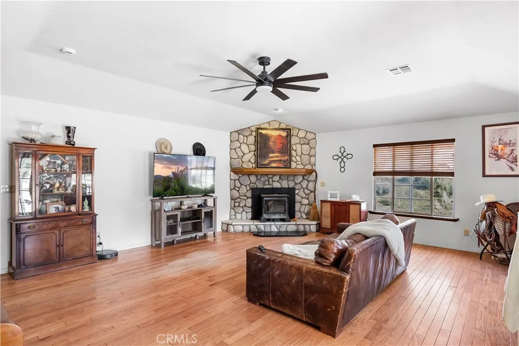 Escape to this beautiful 20-acre ranch retreat offering panoramic views and peaceful country living at its finest. This spacious 3-bedroom + den/office, 2-bathroom home features a bright, open floor plan designed for both comfort and entertaining. The kitchen overlooks the family room, creating a warm and inviting space perfect for gatherings. The living room boasts a cozy fireplace and a convenient wet barideal for relaxing evenings or weekend get-togethers. The primary suite offers a private retreat with double sinks, a walk-in shower, and generous closet space. The two additional bedrooms are perfect for additional family, guests, remote work, or hobbies. Step outside and experience the best of country living! 20+ acres offer endless opportunities for recreation and agriculture. Equestrian enthusiasts will love the 6-stall barn, and fenced pastures, providing plenty of room for horses or cattle to roam. Additional features include a new septic tank, newer roof, air conditioning, dual-pane windows, and the homes own private well. Enjoy ceiling fans throughout and breathtaking views across the valley from every angle. This Tehachapi ranch combines rural tranquility with modern comfortperfect for anyone seeking space, privacy, and endless possibilities. Dont miss this rare opportunityschedule your private tour today!