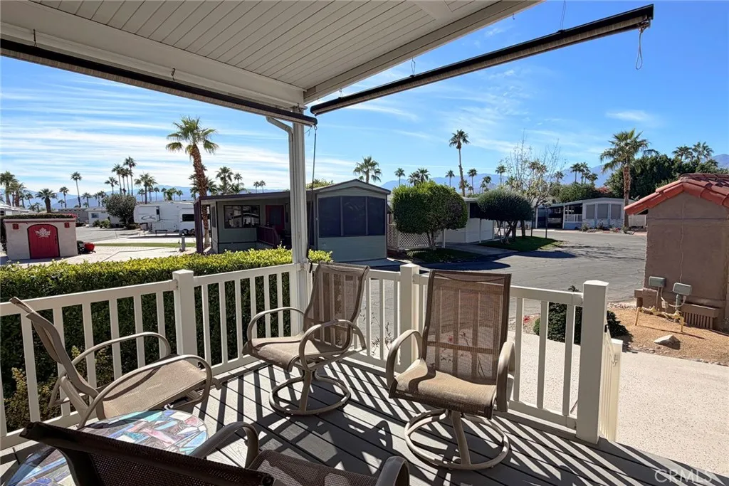 Don't miss one the best properties in in the highly sought after 55+ Seasonal Living "Desert Shadows RV Resort"! You Own Land! Grant Deed Lot with Water, Cable, Trash, and common area included in HOA! This unit is one of the best in the resort, completely renovated, fully furnished and well appointed indoors and out! luxury abounds! 5 Star Kitchen! Cozy Living Room, full size washer and dryer! This is a MUST SEE! Amazing amenities in this fabulous oasis! 2 large & well-maintained clubhouses plus 3 additional satellite clubhouses, An indoor pool with a large spa and sauna, An olympic-length (unofficial width) lap pool, A total of 6 pools, 5 spas and 3 saunas, Sunken, lighted tennis courts, 8 Pickle-ball courts, An indoor shuffleboard pavilion, 16,000-square foot San Jacinto room with floating hardwood dance floor, and a professional stage, plus a large kitchen, A 3,000-square foot Our Gang party room and lounge with a giant fireplace and kitchen, A huge party terrace with mountain views, A fully equipped fitness center, A dance studio, Library, Billiards room, Horseshoe pits, Several laundries, restrooms and bath facilities, Card & hobby rooms with Pottery Kiln, A putting green, Organized fitness activities, Daily activities including dances, dinners and entertainment, Wi-Fi and wired broadband Internet access. Close to everything!